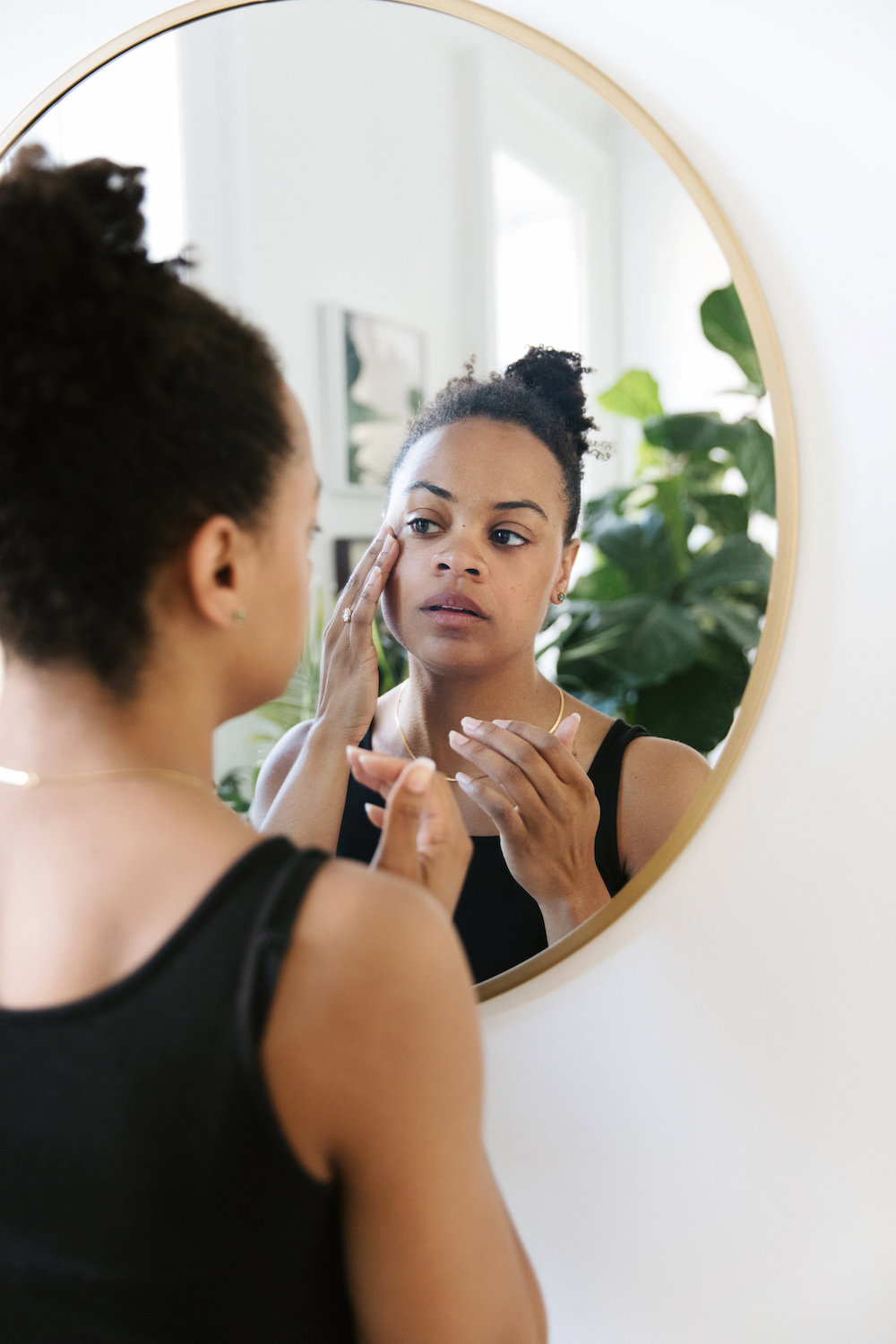 “My skin has always been unpredictable,” she explains. “Some people seem to have concentrated skin issues, like ‘I’m a T-zone gal!’ or ‘I get hormonal breakouts along my jawline.’ But my skin gets different breakouts, in different areas, at different times. It’s always a surprise.”