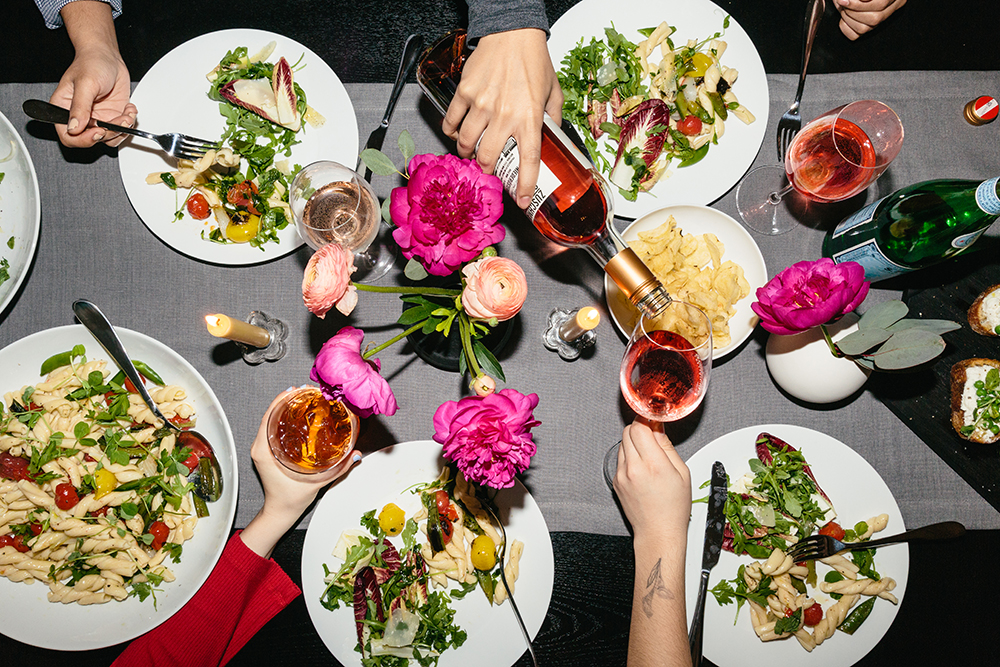 6. The menu isn’t fancy and no one cares. Do you have go-to weeknight pasta? Multiply the recipe and make that! Is roast chicken your speciality? Time to show off your skills. Great at ordering pizza? Now’s your time! Go big with your tried-and-true favorite dishes, and add bulk to the meal with sides you can throw together at the last minute, like a giant salad. When it’s time to eat, this starter eat bundle makes any meal look beautiful. The matching dishes and silverware are super durable as everyday essentials, while the additions of serving bowls and platters make the table look like you’re the ultimate host. It’s a set I look forward to using for years.