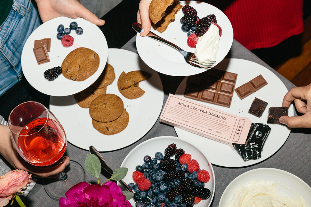 7. Dessert is store-bought. A handful of broken-up chocolate bars, a pile of Tate’s chocolate chip cookies and a bowl of berries are enough to blow friends’ minds.