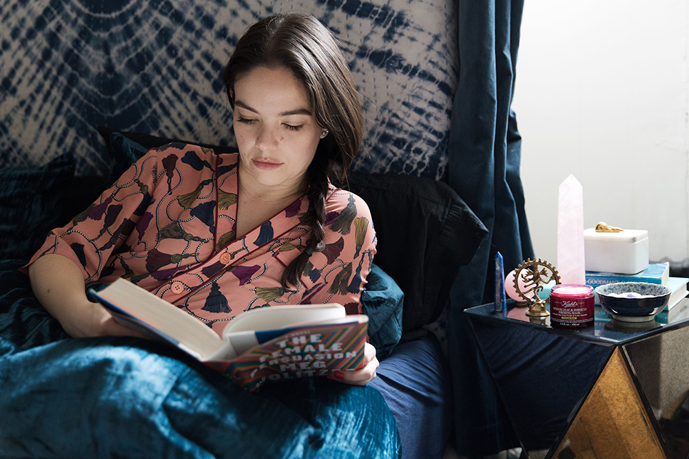 While the mask is doing its thing, I’ll use this time to relax and unwind. I banish my phone to the living room where its glow cannot beckon. Then, I’ll read a book. Other times, I’ll practice yoga nidra, a super relaxing style of meditation that takes you to a state between sleep and waking.