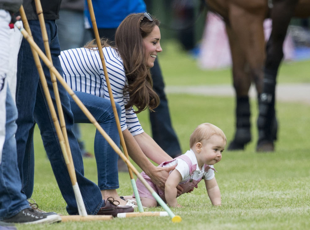 Kate catching George at a polo match in 2014.