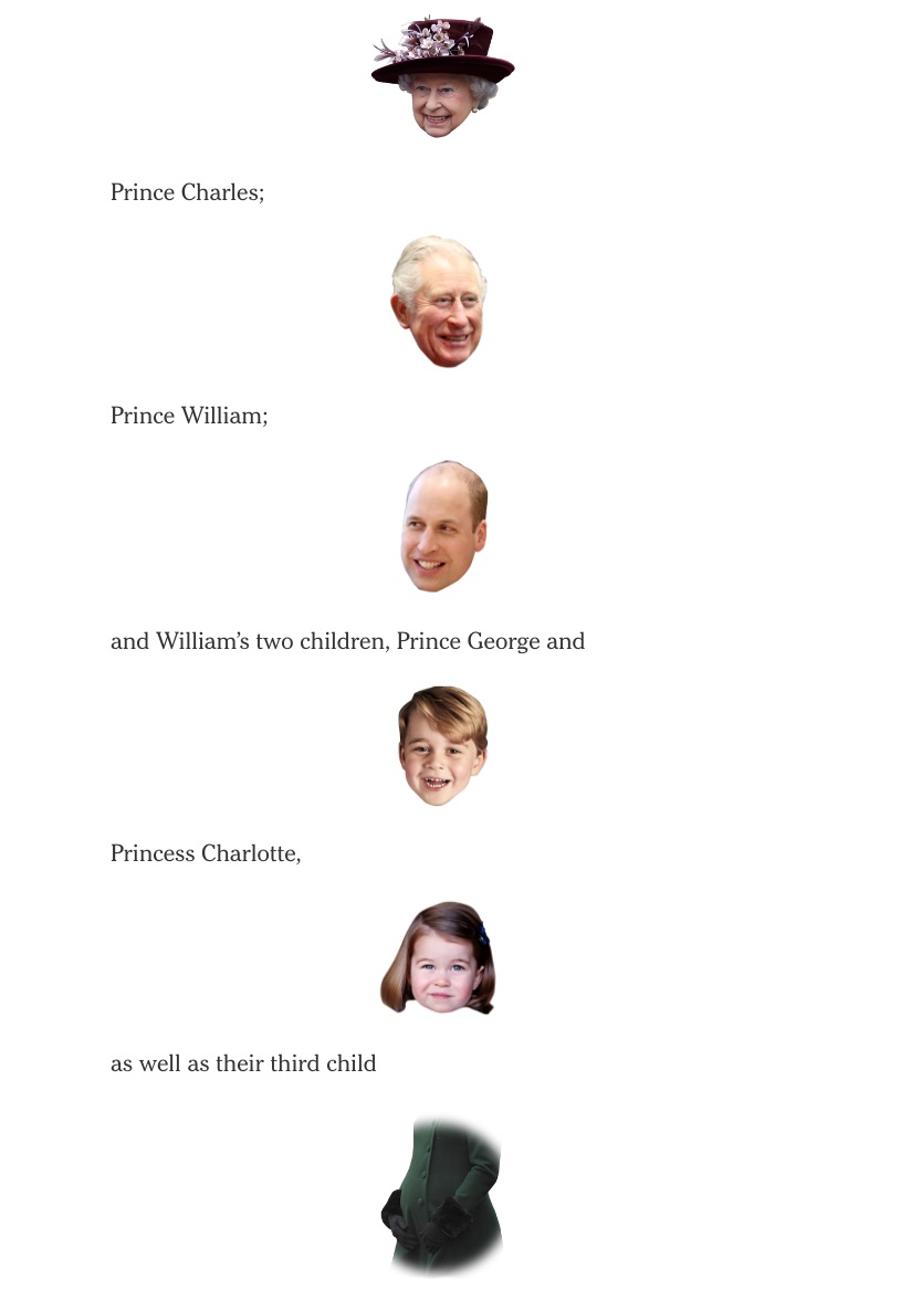 The New York Times made this graphic of the line of succession — followed by Prince Harry, who is now bumped to sixth in line to the throne: