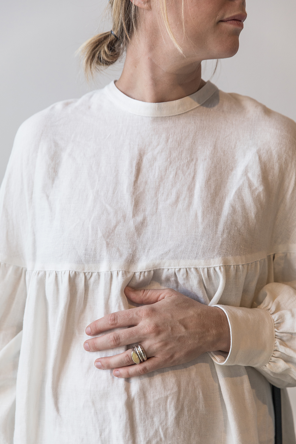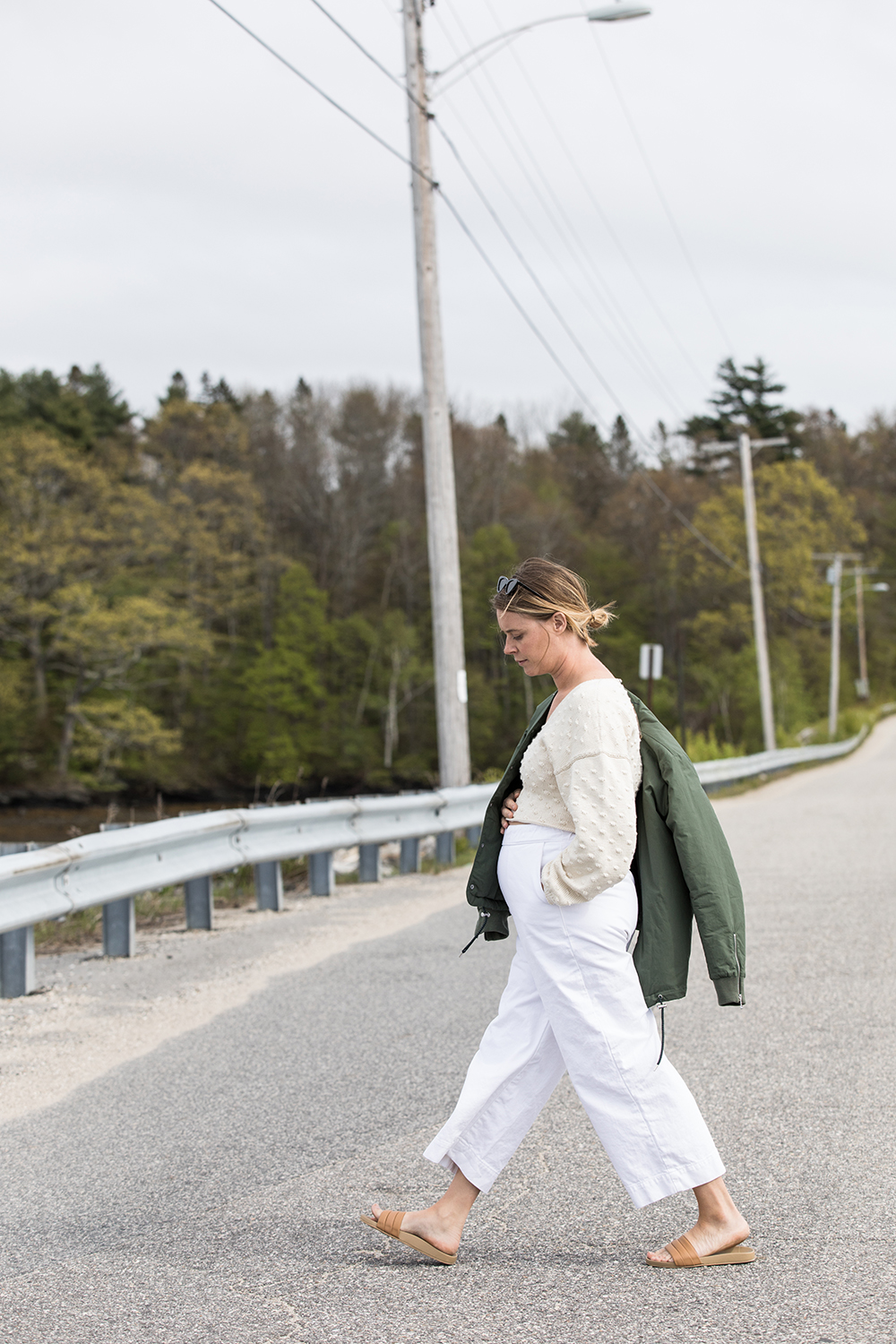 Julie O’Rourke, the designer of kids’ line Rudy Jude, lives in midcoast Maine with her partner Anthony and their son Diogo — plus, a baby due in October. “I love living in Maine,” she says, “But has its ups and downs, like anywhere else. The winters are really hard. By the end, you’re like, what are we doing here?! Then summer comes and there’s so much to do and eat. It’s kind of masochistic, but I can’t imagine living anywhere else.” Here, Julie shares six outfits she wore in a week…