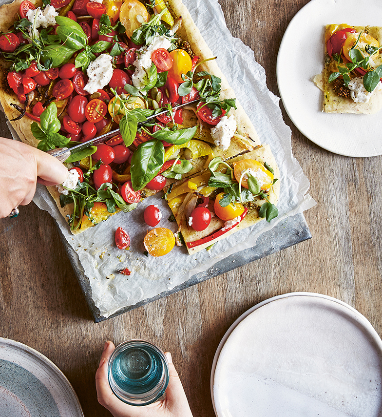 What are you cooking these days? To kick off a month of summer produce, we’re excited to feature a delicious pesto and arugula pizza from Bettina Campolucci Bordi’s Happy Food. Bonus: It can be made gluten free! Here, Bettina shows us how it’s done…