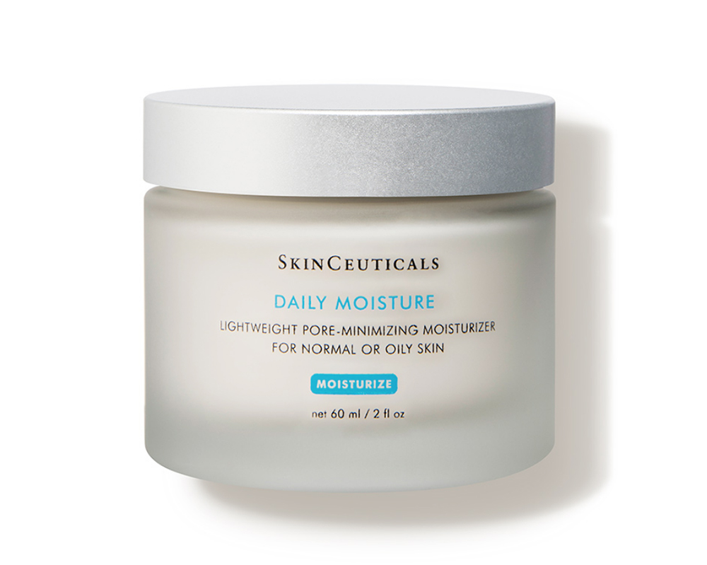 SkinCeuticals Daily Moisture. Lastly, my dermatologist told me to apply this moisturizer at night, after washing my face with a gentle cleanser. The formula includes vitamin E, nutrient-rich algae and a blend of botanical extracts, and reduces the appearance of enlarged pores. It makes my skin feel soft and plump — even when I wake up the next morning.