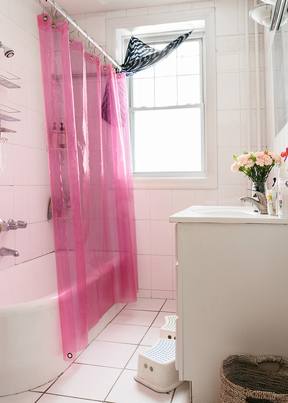 On small spaces: I was like, ‘How do you design a bathroom?’ You just get a weird shower curtain that’s cool and easy to clean. That’s it!