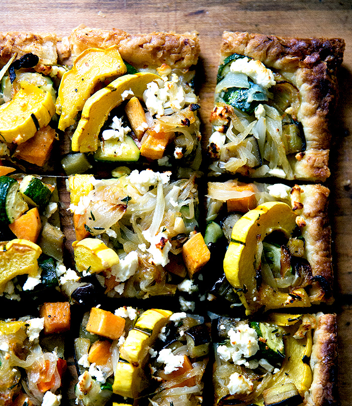 Roasted Vegetable Tart with Caramelized Onions and Feta