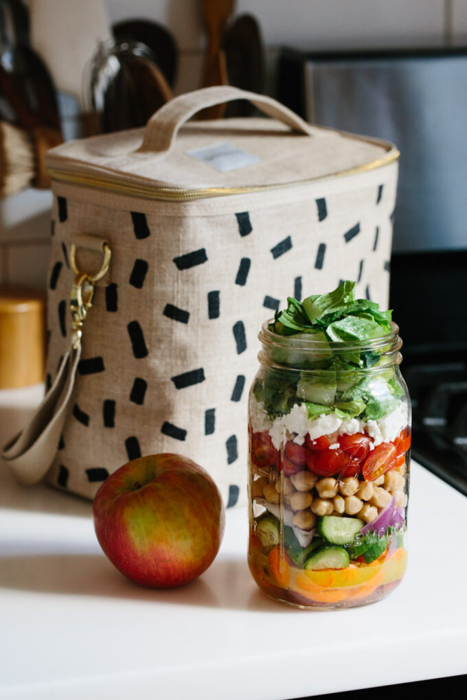 Salad in a mason jar is the easiest way to have a big, zillion-ingredient salad at work. The key is simply knowing how to layer it: Dressing goes in first, followed by your firmest vegetables (carrots, etc.). Next, add your grains and/or beans and a protein. Top it all off with lettuce or leafy greens. When you’re ready to eat, just dump it all into a bowl and toss!
