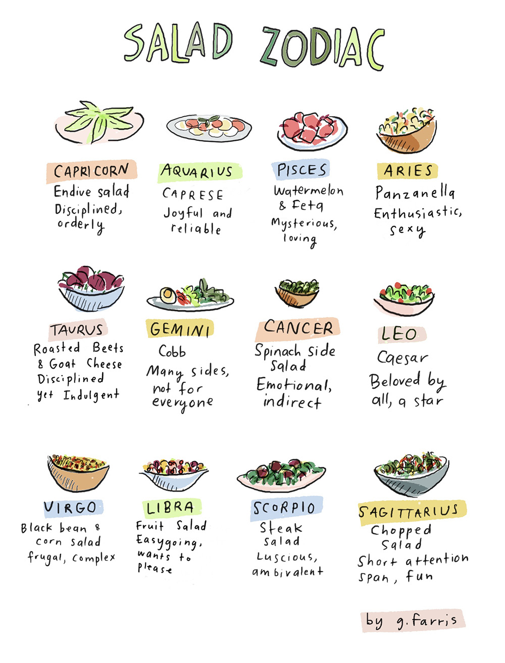 Capricorn here who does not like endive, and appreciates some mad chaos in my salads. Going over to hang out with the Cobb and steak salad peeps.