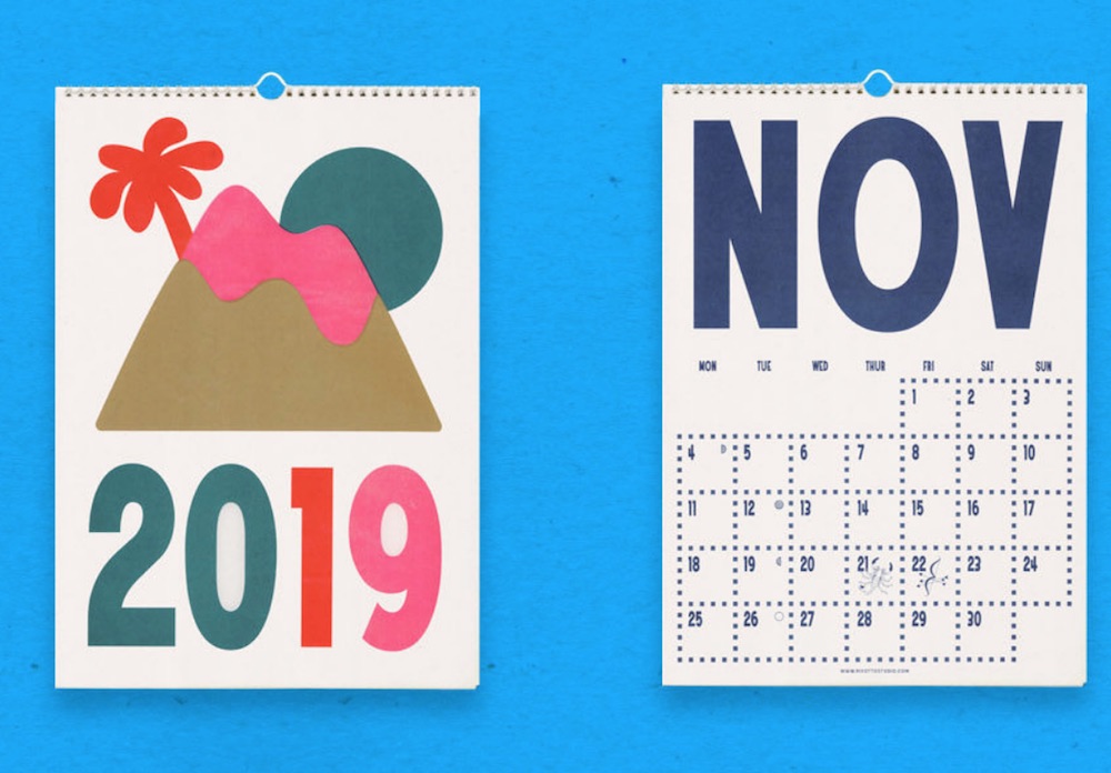 Graphic calendar, $26, plus a date for him to visit you. (This is cool, too.)