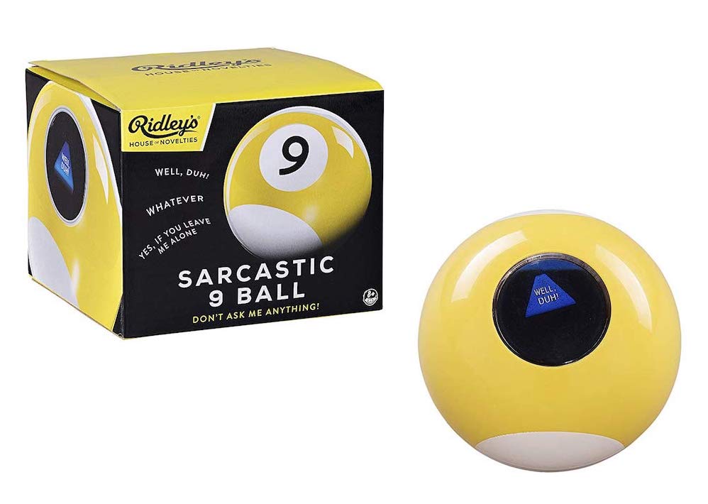 Sarcastic magic ball, $18, to display on his coffee table and make his friends laugh.