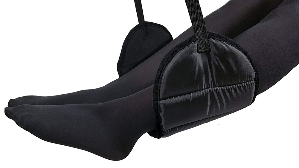 Airplane footrests, $20, so he can actually sleep on red eyes.