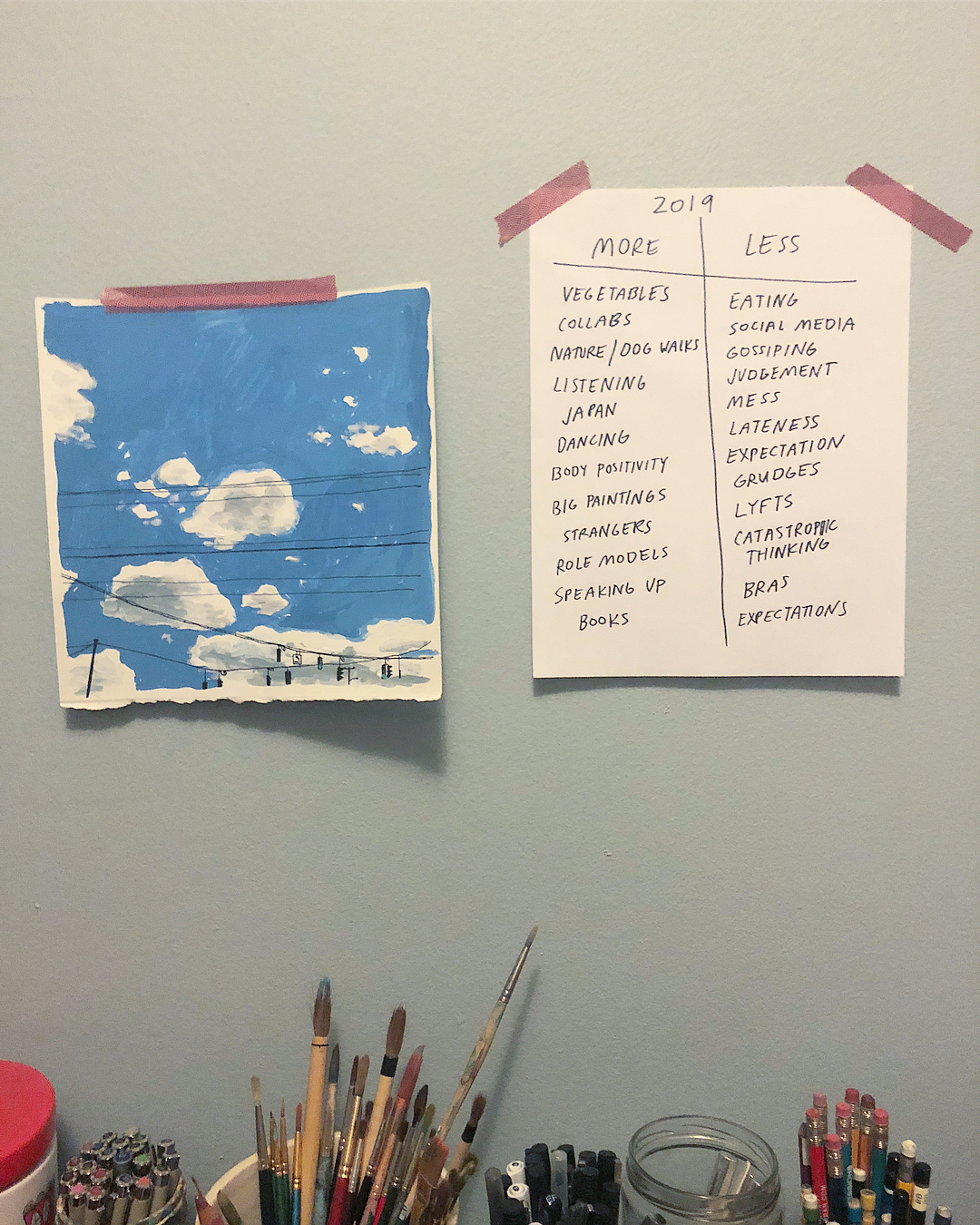 Instead of hard-and-fast rules, Julia made a list of things she’d like to do “more” and things she’d like to do “less.” How great is that? “It’s a more relaxed approach than ‘yes’ or ‘no,'” she told me on the phone this morning. “It’s just like, be a little better about it.” I also love how it encourages you to think about what really matters to you in your life.