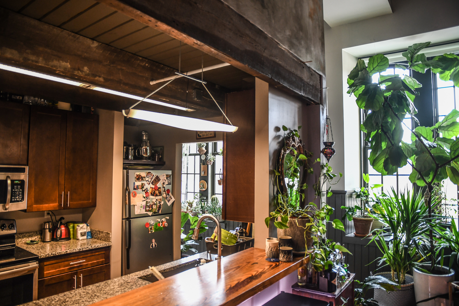 On finding your light: The first thing to figure out when you want to buy a plant is what kind of light you have. Get to know your window — is it east-facing, north-facing, etc. Then go to the nursery or hardware store. Always talk to the associates about which plants will work best for you — and let them tell you how to care for them. You might think there’s one kind of starter plant, but there isn’t. People usually think they should start with a snake plant. True, that is a low-maintenance, low-light plant, but if you’re new to plants you might not realize that snake plants like to stay dry longer than other types, and you’ll likely overwater it. A lot of plants die because of overwatering.