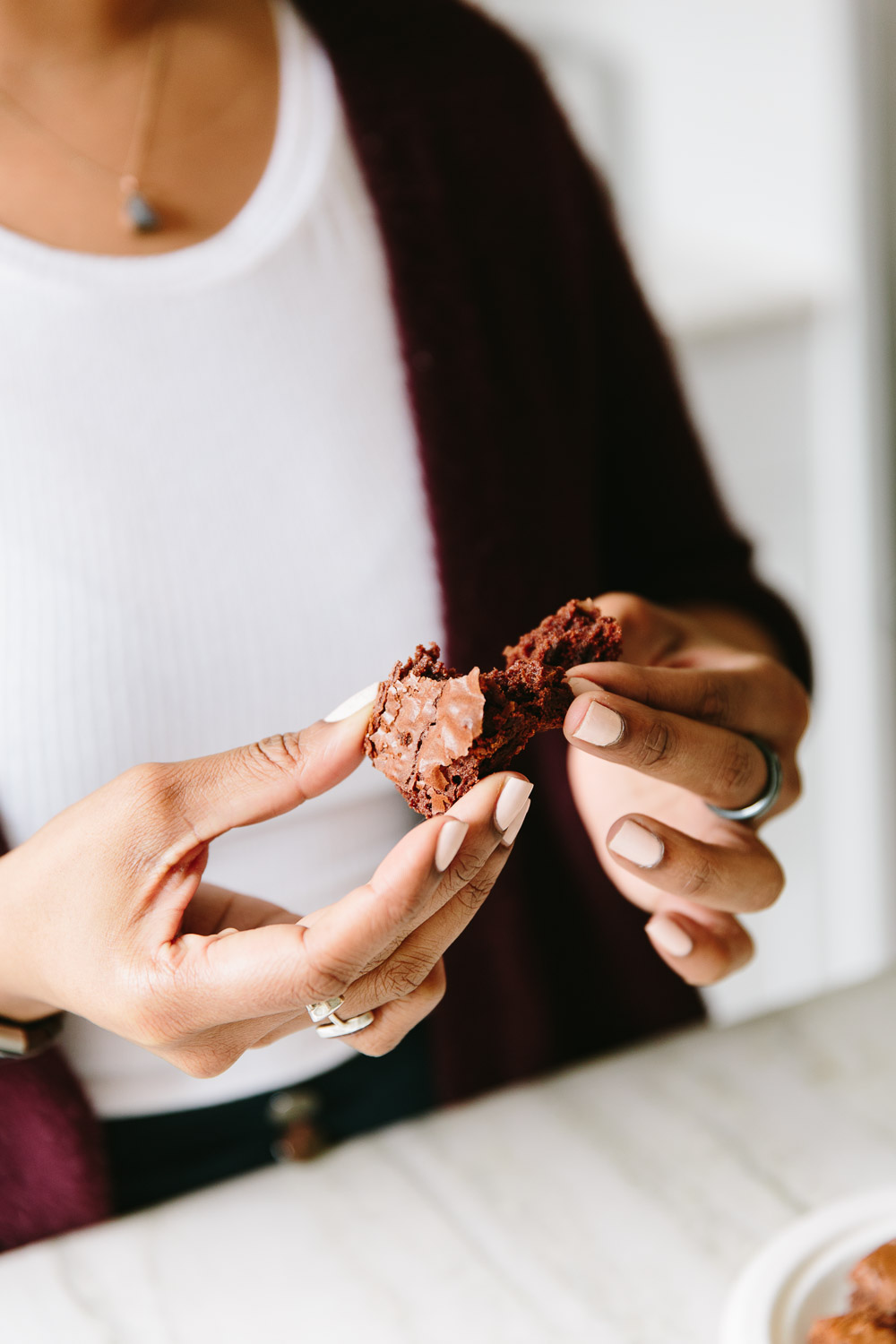 Not surprisingly, Jerrelle, who describes herself as a “hypersensitive baker” in her book, has a very specific idea of what makes the ideal brownie: “It has to have a sturdy edge and be fudgy in the middle,” she told me, while surveying the array of baked goods before her. “In a perfect world, my ideal brownie is warm, and I’m an edge girl, so a double-edge brownie is going to always have a leg up.” What about chips? I ask. “No chips or anything else!” she said, as though I’d suggested arsenic. A purist! Just as we figured.