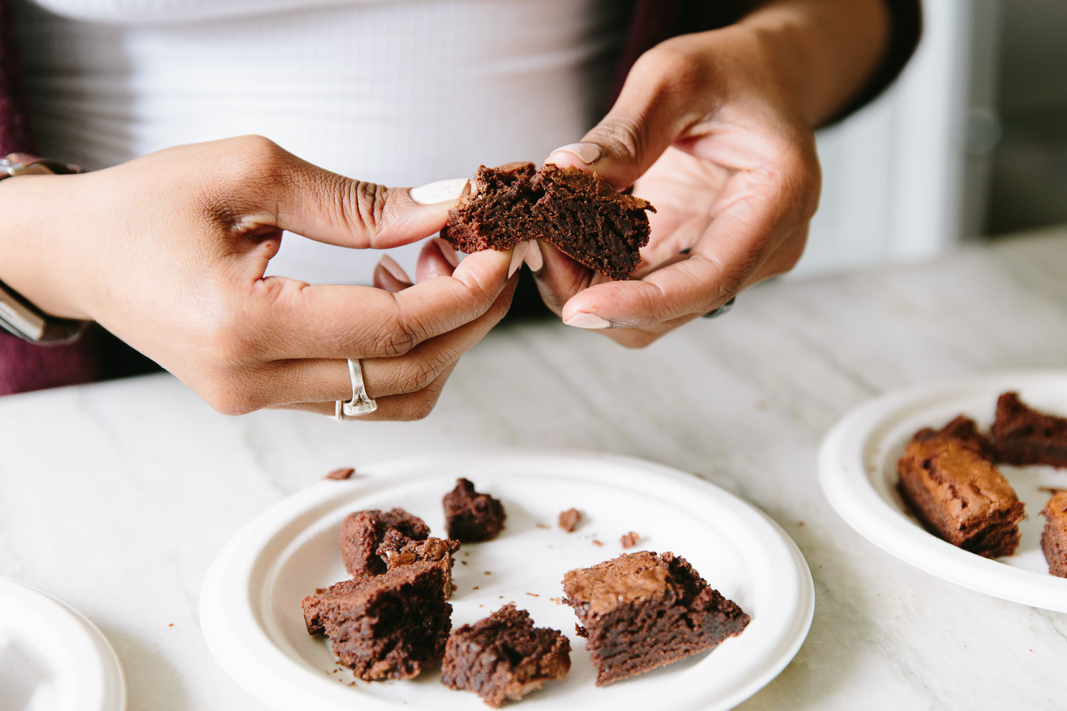 We turned to an expert to make the call. When we found out that Chocolate For Basil‘s Jerrelle Guy was swinging through town from Dallas for the James Beard Awards (her awesome book Black Girl Baking was nominated), we jumped on it and organized a box mix brownie taste test.