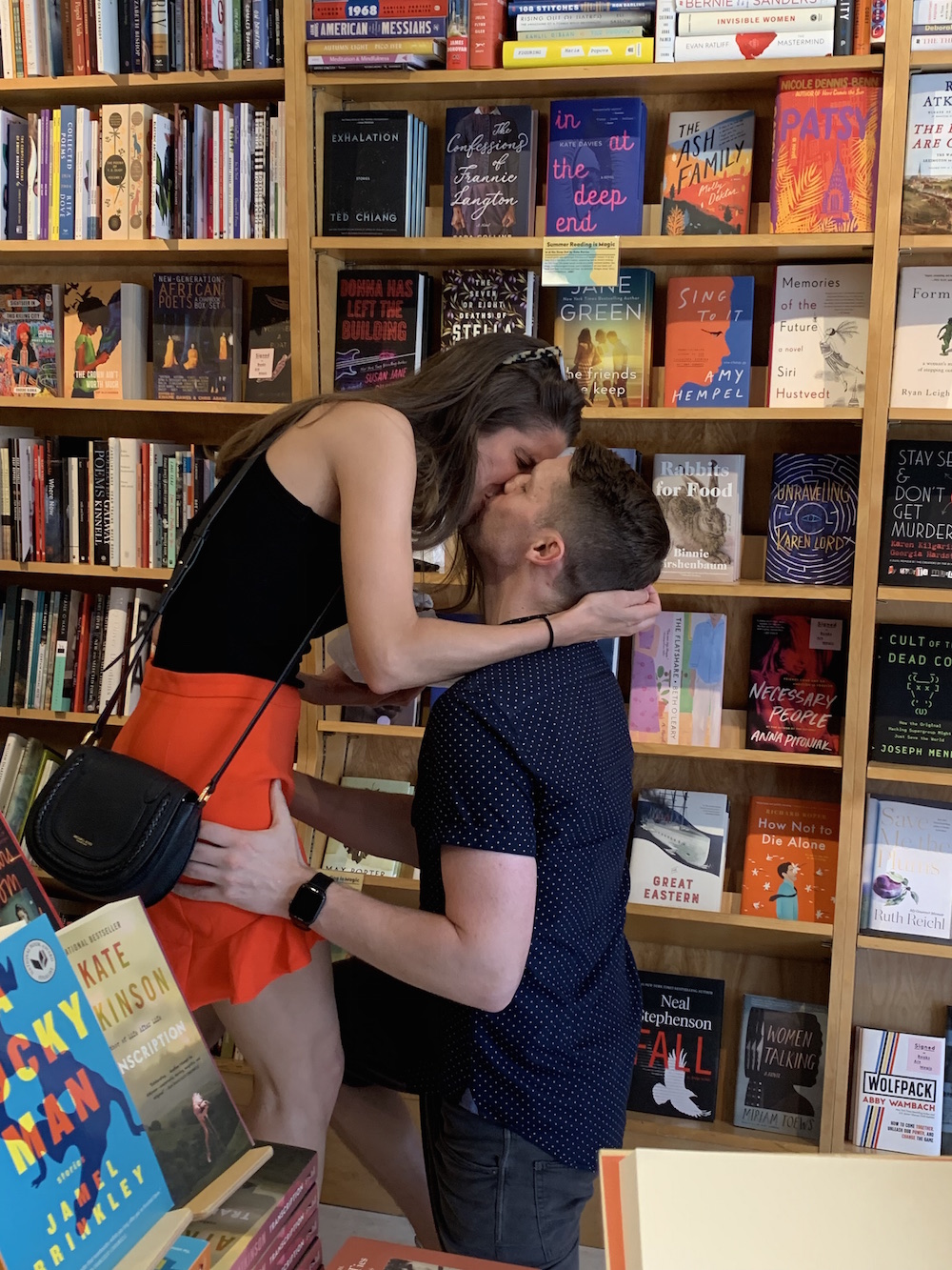 The funny part was that the Books Are Magic folks put the book in the new fiction section. That was one part that I didn’t think through enough, and it turns out she doesn’t really browse in that section. She was bopping around in Staff Picks — and I was hanging out over in new fiction. After five minutes, I started worrying she might never come over! But finally, she did, and I was like, Have you heard of this book? She picked it up, opened it and saw the ring, and I kneeled down and asked if she would marry me. She was very, very surprised and shocked. She looked over and our friends were taking pictures. Then she started freaking out. The Books Are Magic staff member, Liv, was probably the most excited of all the people involved. She was crying the hardest!