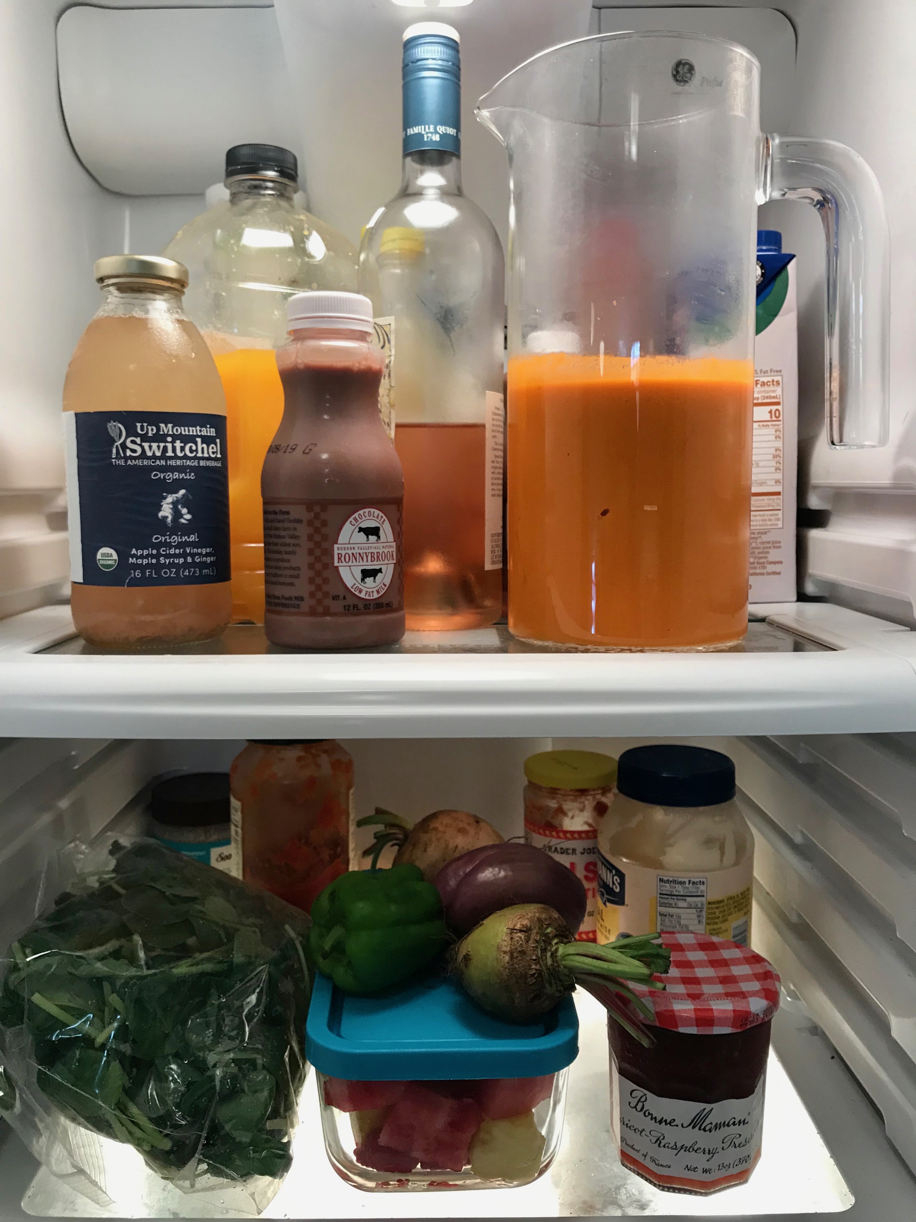 As Moskin writes in her story, “Olive oil is what makes gazpacho more than vegetable juice. It is what makes gazpacho silky and satisfying.” Look how beautiful it is sitting there in my refrigerator.