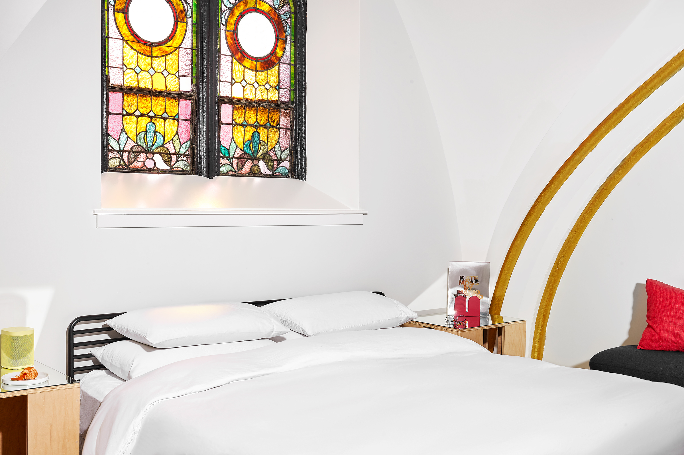 I’m admittedly biased, as The Deacon was an interior design project I worked on, but I promise you, it is one of the most unique stays you can have in Philadelphia — or anywhere! Housed inside a 1906 Watson & Huckel designed church, The Deacon is a boutique hotel and event space. It was designed to be a place to gather, honoring the church’s original ethos of community. There are eight hotel rooms, each designed to look and feel different. My favorite is bedroom number seven, which has the most insane natural light and a reading nook, with lots of art books, including some I donated from my personal collection! And like all the rooms, it has a beautiful stained glass window right above the bed. It’s the kind of place where you notice something different every time you visit.