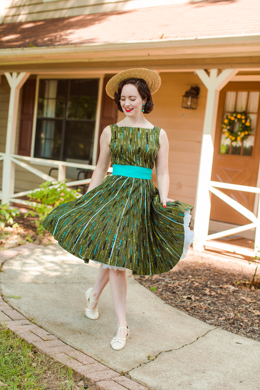 Dress: vintage. Hat: Etsy. Earrings: vintage. Shoes: Charlie Stone.