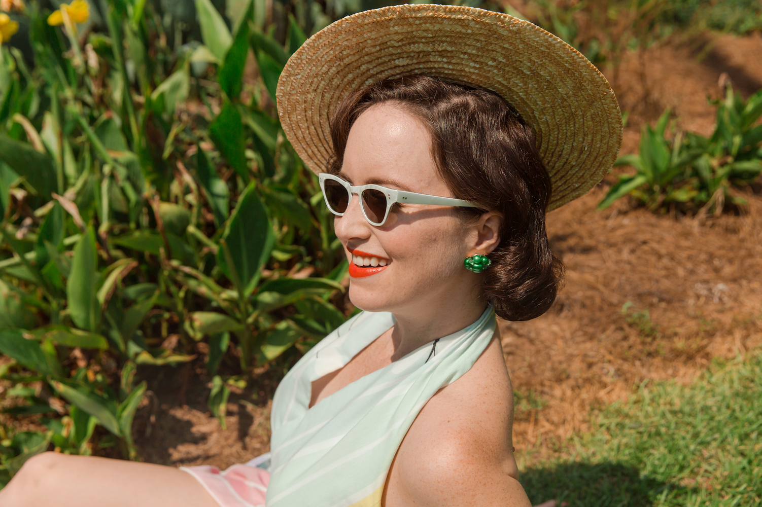Playsuit: homemade. Hat: Etsy. Earrings: vintage.
