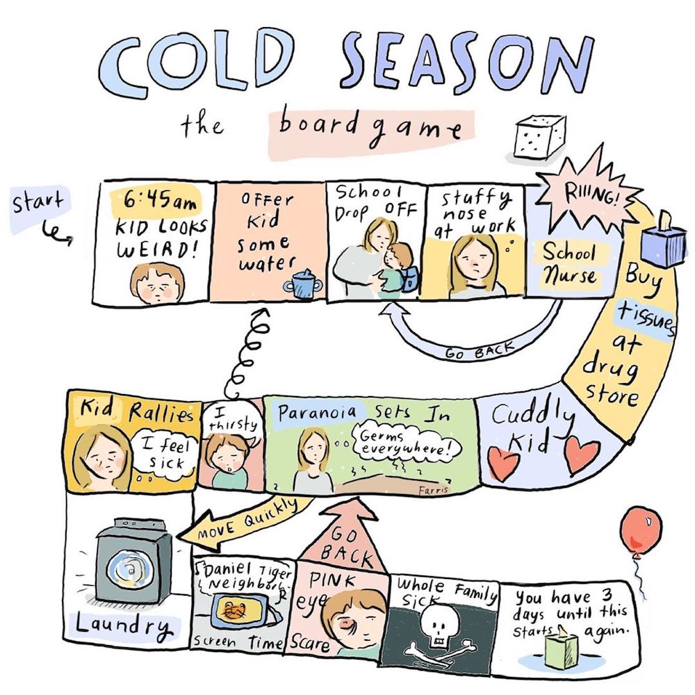 I LOL’d. Unfortunately it’s missing the “double whammy” square where both parents get the stomach flu at the same time. That was us on Tuesday!