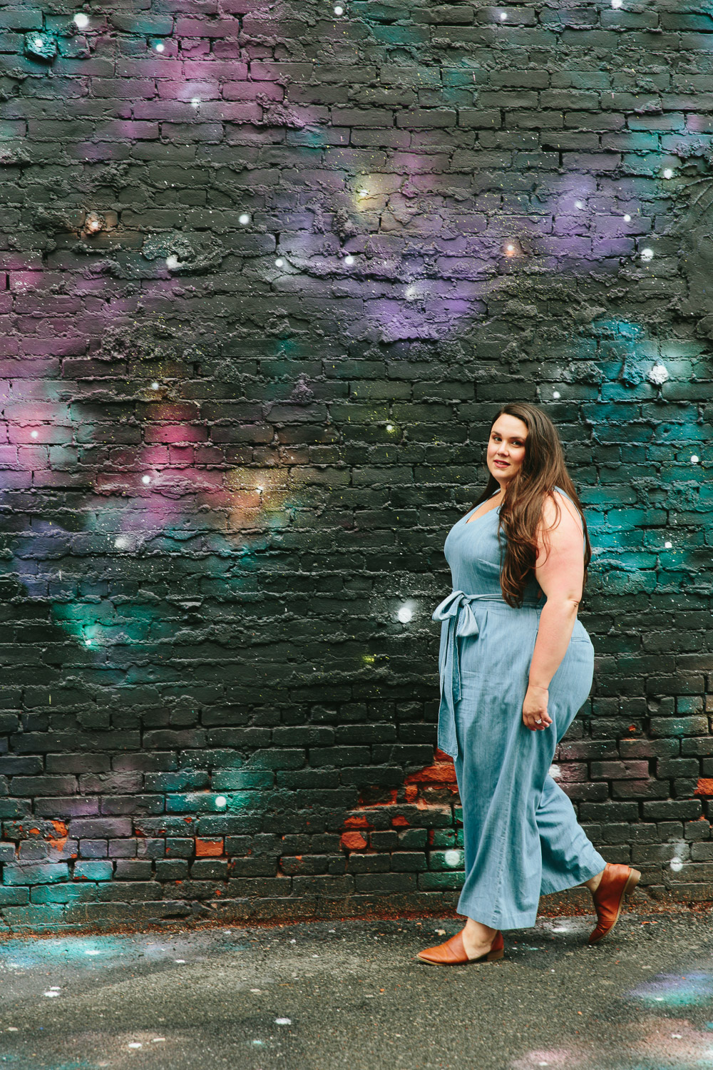 “Wearing a romper was a big stretch for me — that’s why it felt important for me to try it. I’ve been scared to wear rompers or overalls my whole life because I’ve been very self-conscious about my lower belly and my VBO (visible belly outline). And after having a child, my lower belly is the biggest and lowest it’s ever been. I’ve only recently become comfortable enough to try a look like this. It’s both so scary and so liberating!”
