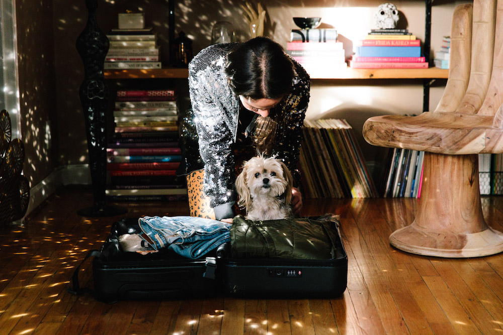 My dog, Mia, finds packing even more anxiety provoking than I do. The mere sight of a suitcase sends her into a tizzy, as she thinks it signals that the people are leaving. So as a precaution, she usually packs herself. (And I always bring her, anyway. Along with one of these:)