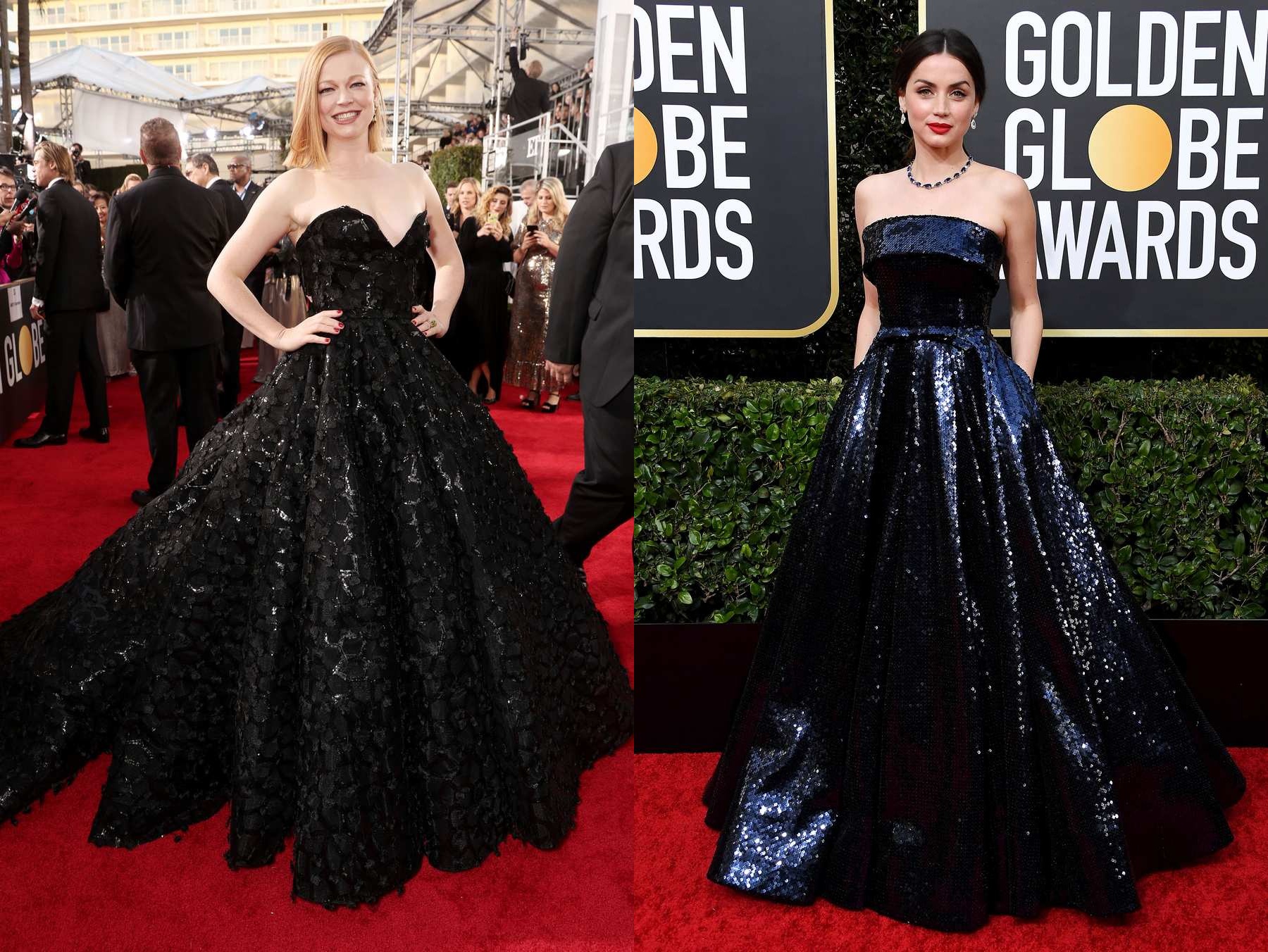 This award goes to Sarah Snook from Succession (left), who wore a voluminous black sequin ballgown by Christian Siriano and Ana de Armas, nominated for Best Actress for her role in Knives Out, in an eerily similar navy ensemble by Ralph & Russo. It was like Cinderella meets The Parent Trap, in the best way possible.