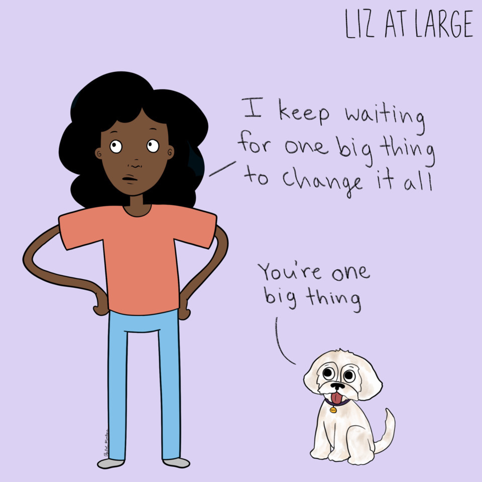 My sophomore year in college. I literally was sitting in my dorm room one day and I needed a way to check in with myself that wasn’t super overwhelming, something I could do in 10 minutes. I started drawing small pictures with whatever words, captions or phrases I had on my mind that day. As I kept doing it, it became easier to expand on topics outside of myself — not just how my day went or that so-and-so didn’t text me back, but bigger issues, like race and gender and what it’s like to be in America in this body at this time. It’s a very weird time.
