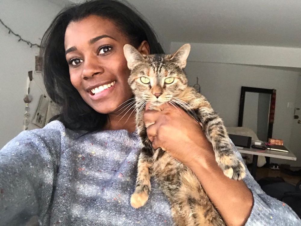 My cat, Cleo, is a big part of my life. I was lightly considering getting a cat and I went to the shelter — and once you’re in the shelter, game over. As soon as they get you in there, you’re leaving with something. I saw Cleo and was like, okay, I can do this. I got her back in August and she’s the greatest thing ever, the light of my life. She’s quite sassy. She’s five years old but only five pounds, so she looks like a kitten. She runs this place.