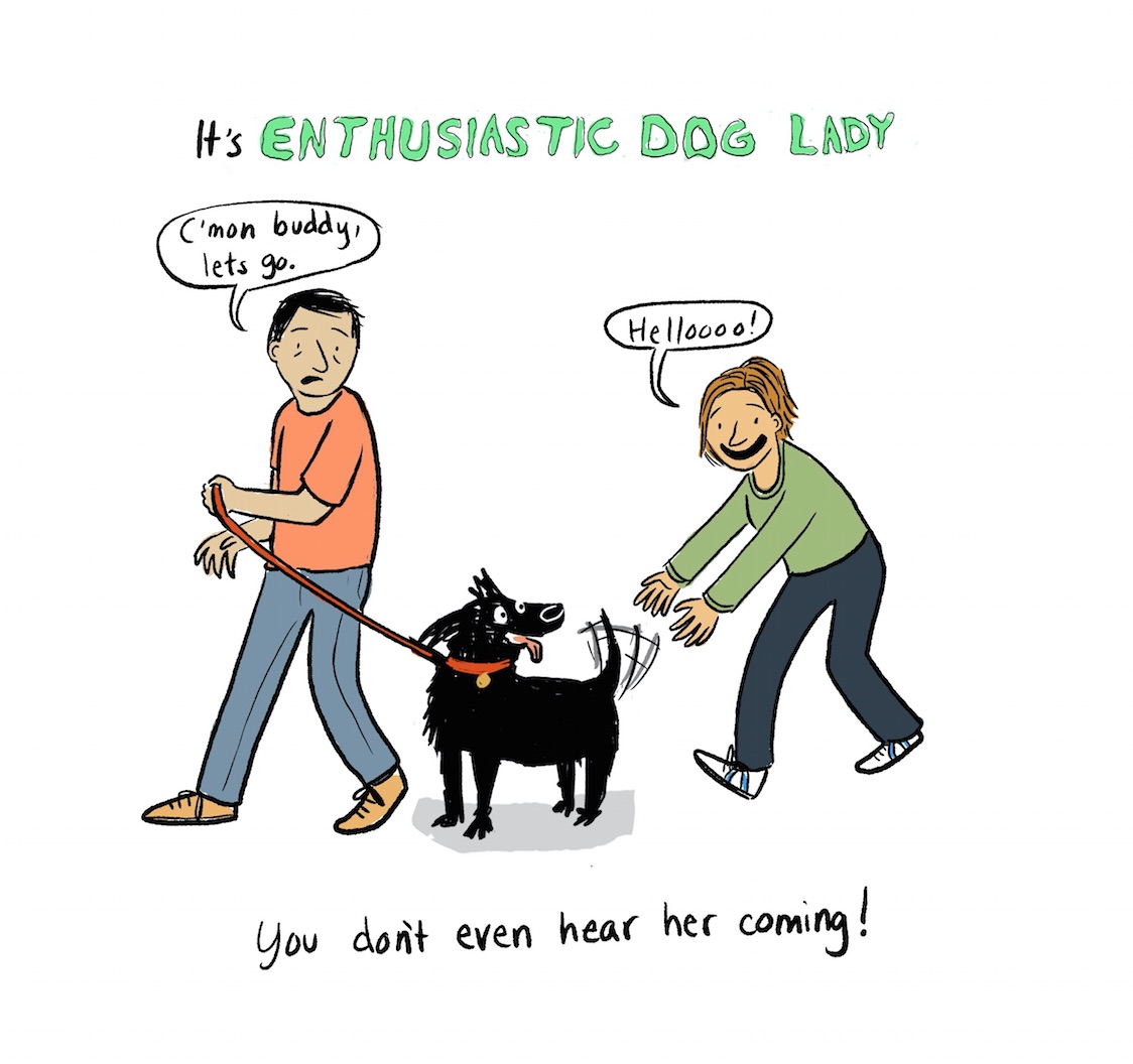 I have to chime in with the others and agree, though the comic is cute, PLEASE don’t do this!! It’s a little like if random strangers ran up and tried to snuggle your child, except your child has very sharp teeth! I have a well trained, well socialized dog who really does not prefer affection from random people. It’s my job to advocate for him and I do.