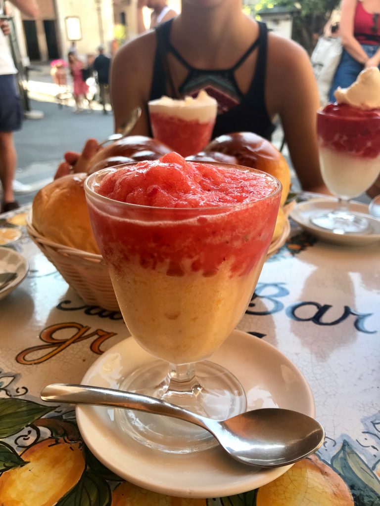 I find that asking your kids a “Top 5” question will usually get the conversation flowing, quarantine or no quarantine, but this time the exercise prompted an hours-long drive down memory lane and around the world. In a few short hiking miles, we revisited a Portland picnic bench overlooking the Atlantic where we ate the perfect lobster roll; a bustling, buzzy little cafe in Sicily’s Taormina for the traditional breakfast of brioche with granita (above); a parking lot in Austin, the four of us shoveling down brisket tacos, stopping only to breathe and say things like holy moly, can you believe, omg. It felt so therapeutic talking about the restaurants we miss and family vacations we’d taken through the years, and I thought you might enjoy the game as well.