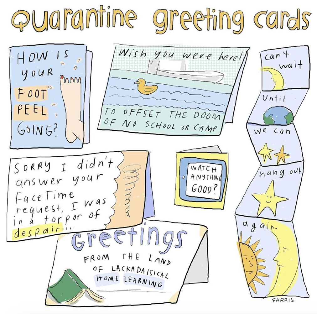 For those of you looking to send a quarantine card to friends and family, I’ve recently purchased really cute post cards from a small business that say “Greetings from My Couch.” She has an Etsy shop and is offering free shipping!