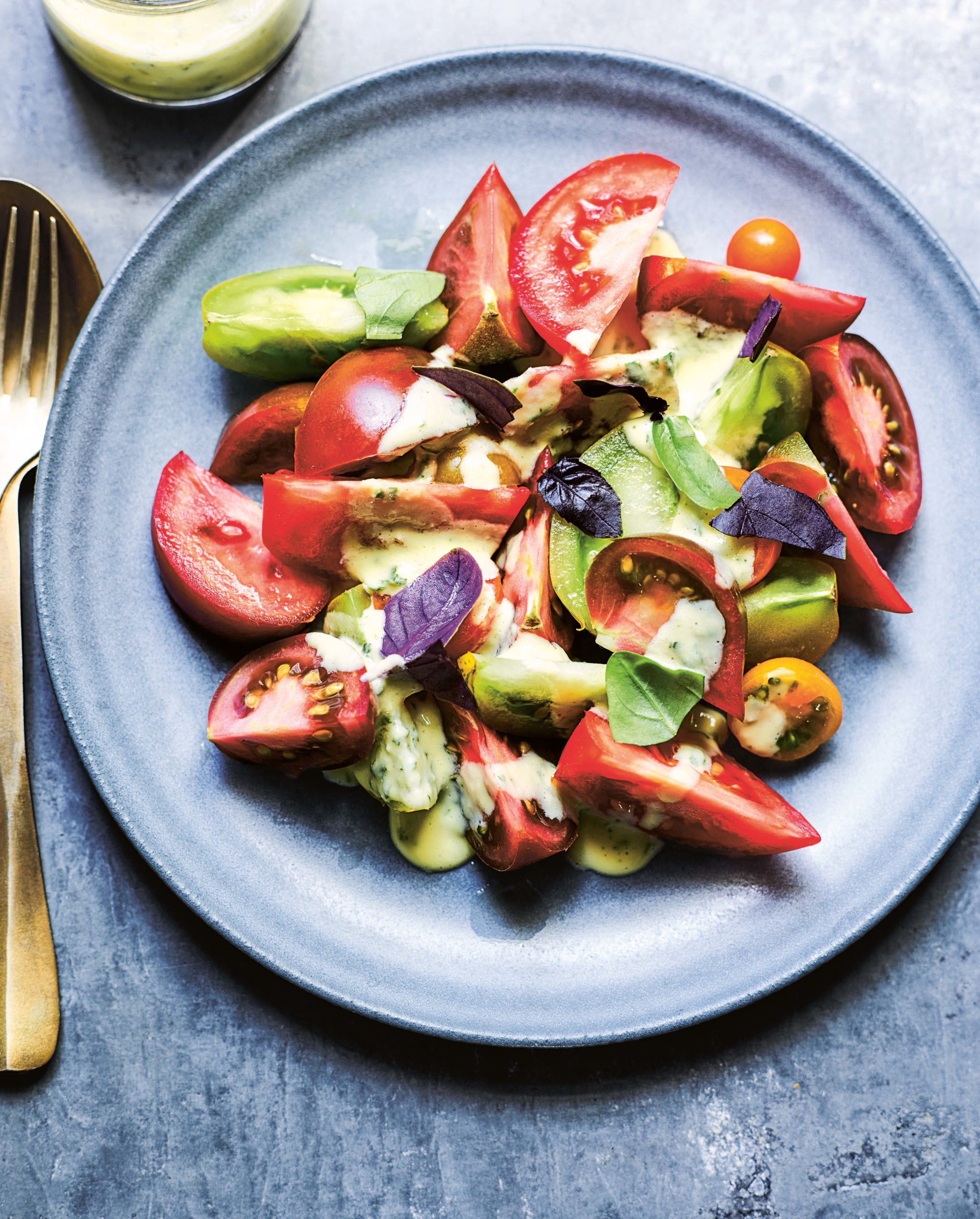 Tomato Salad with Sweet Corn Basil Dressing