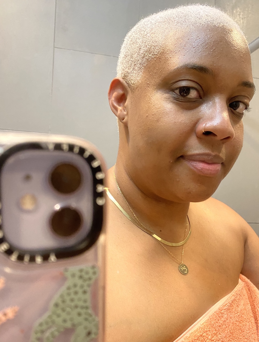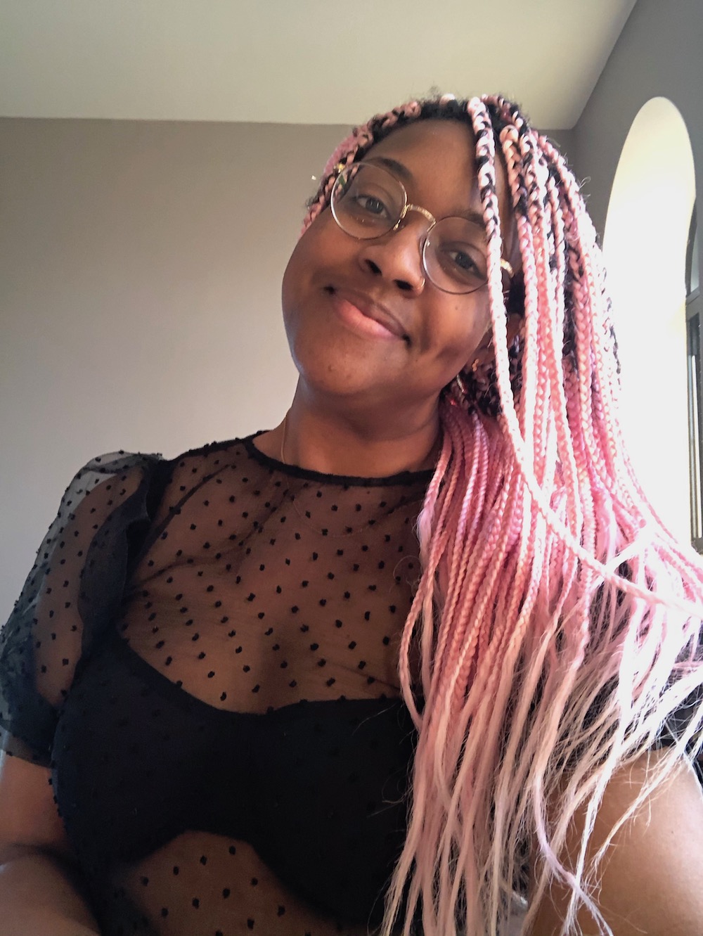 I’ve always been a fan of extremes, so I love my hair most when it’s in long braids or is short short. One of the times I’ve felt most me was when I had pink braids. I still think about them all the time! The other time was when I shaved my head and bleached it. A couple months ago, Steven was giving me a trim and cut my hair to the point where I was basically bald (he forgot to put the guard on!) but I just rolled with it and actually really loved it after a while. Right now I use jojoba oil on my scalp and Shimmer Lights purple shampoo and conditioner to keep my hair from turning too yellow.