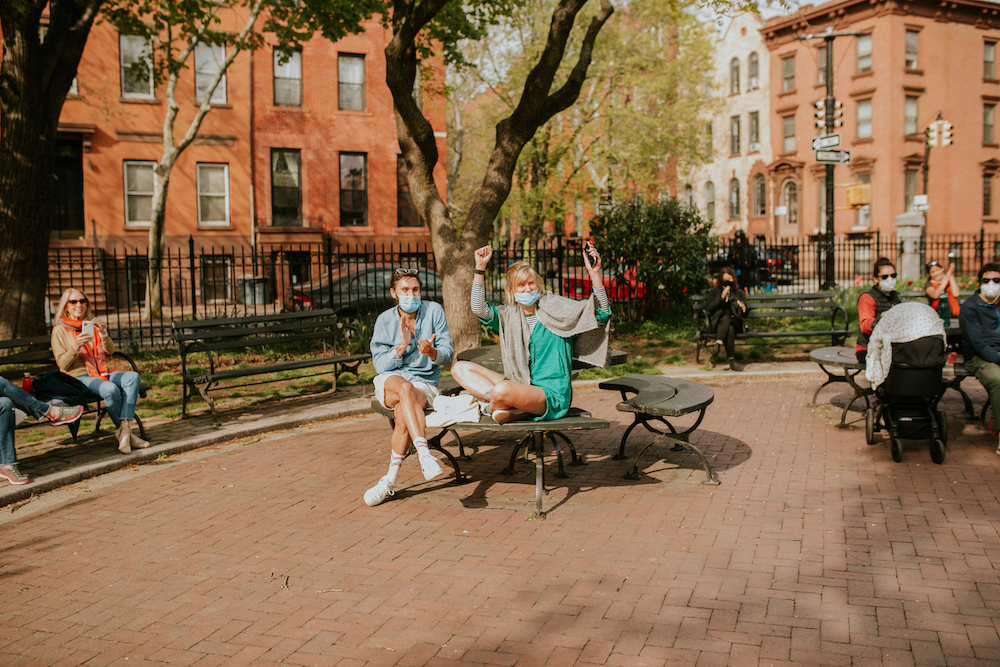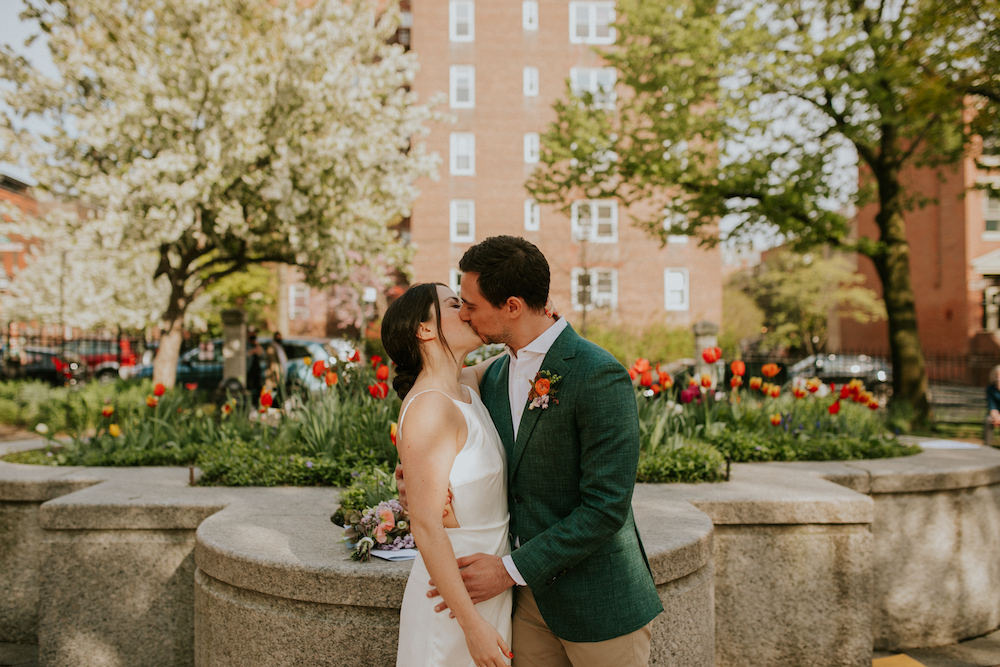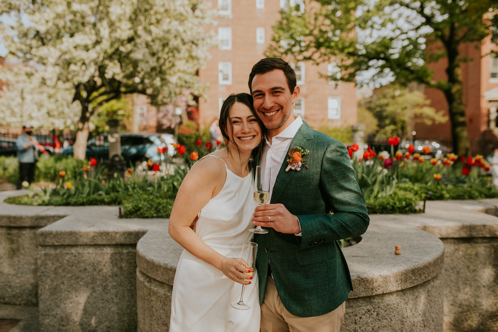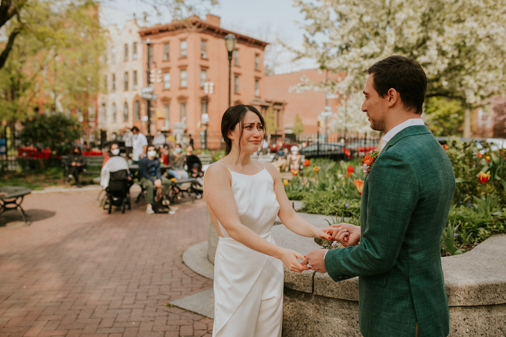 “Everyone was being respectful and social distancing. People who didn’t know us were watching our ceremony. Making a commitment in front of this community felt really special, like we were bringing joy into the neighborhood. People were saying, ‘Thank you for letting us bring our baby to his first wedding!’ and ‘This made our whole day!’ Strangers connecting is such a part of living in New York.”