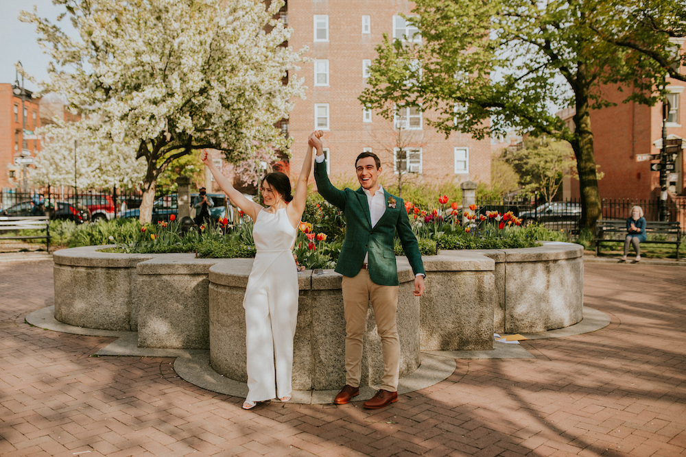 “We were supposed to throw a big wedding in Greenpoint on April 25th but we had to cancel. The few weeks before, we thinking about what we wanted to do to make that day special — we didn’t want it to be a bad or negative day. But after the stay-at-home order came out, we thought, we should just really get married on April 25th.”