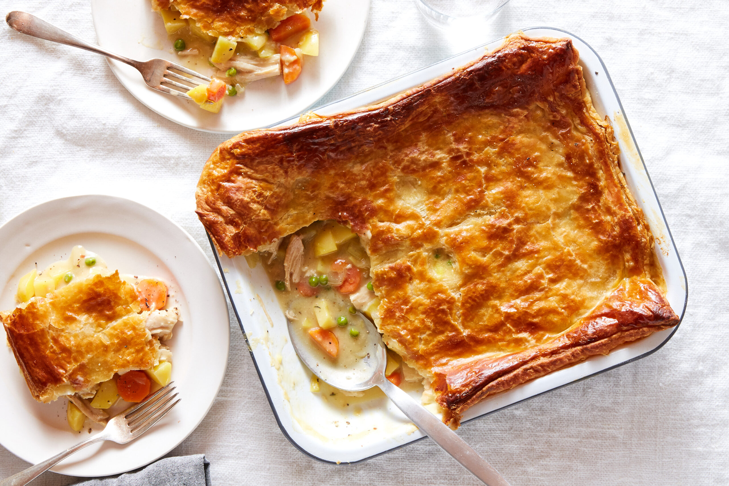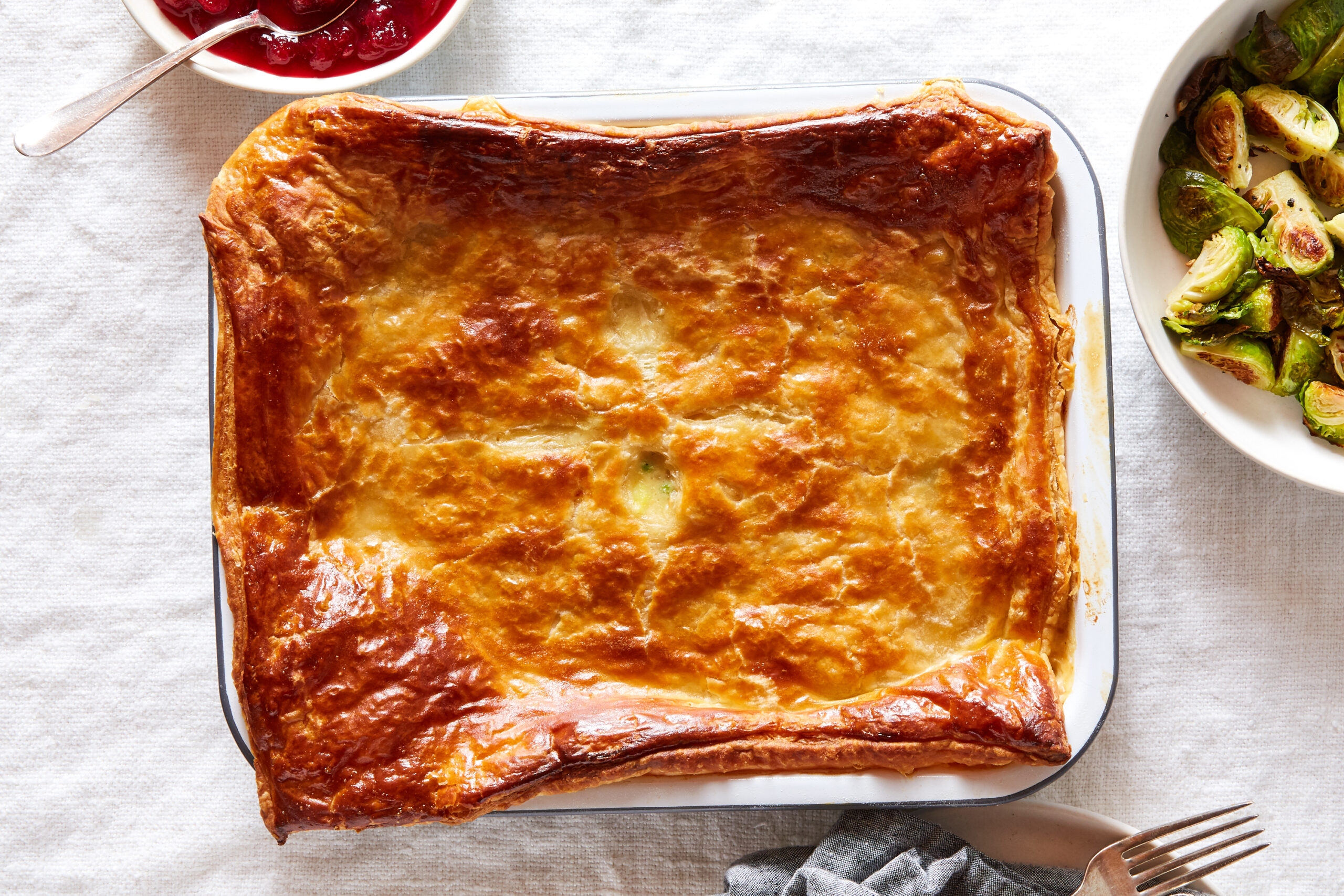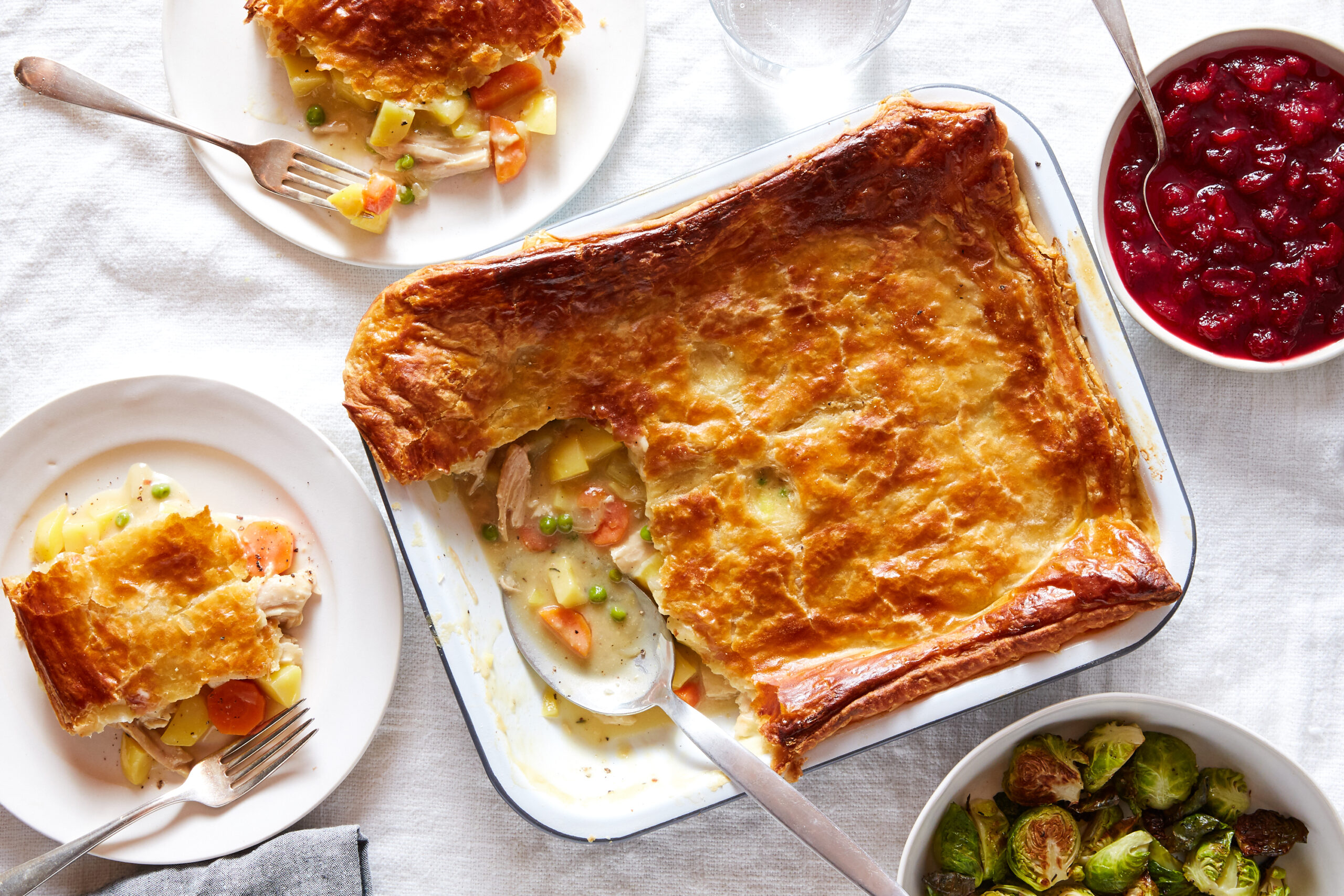 We can definitely help with that, Claire! Almost everyone I know is hosting an intimate, smaller-scale feast this year — whether that means roasting a 4-pound chicken instead of a 20-pound heirloom turkey or takeout from a favorite restaurant they want to support — but that doesn’t mean we aren’t craving something a little special to eat while we give thanks. I really love the idea of Pot Pie at the center of a family table — rounded out with a favorite Brussels sprouts dish (this or this) and cranberry sauce (two options; one fresh, one cooked) and, yes, you’ve got yourself a dream meal.