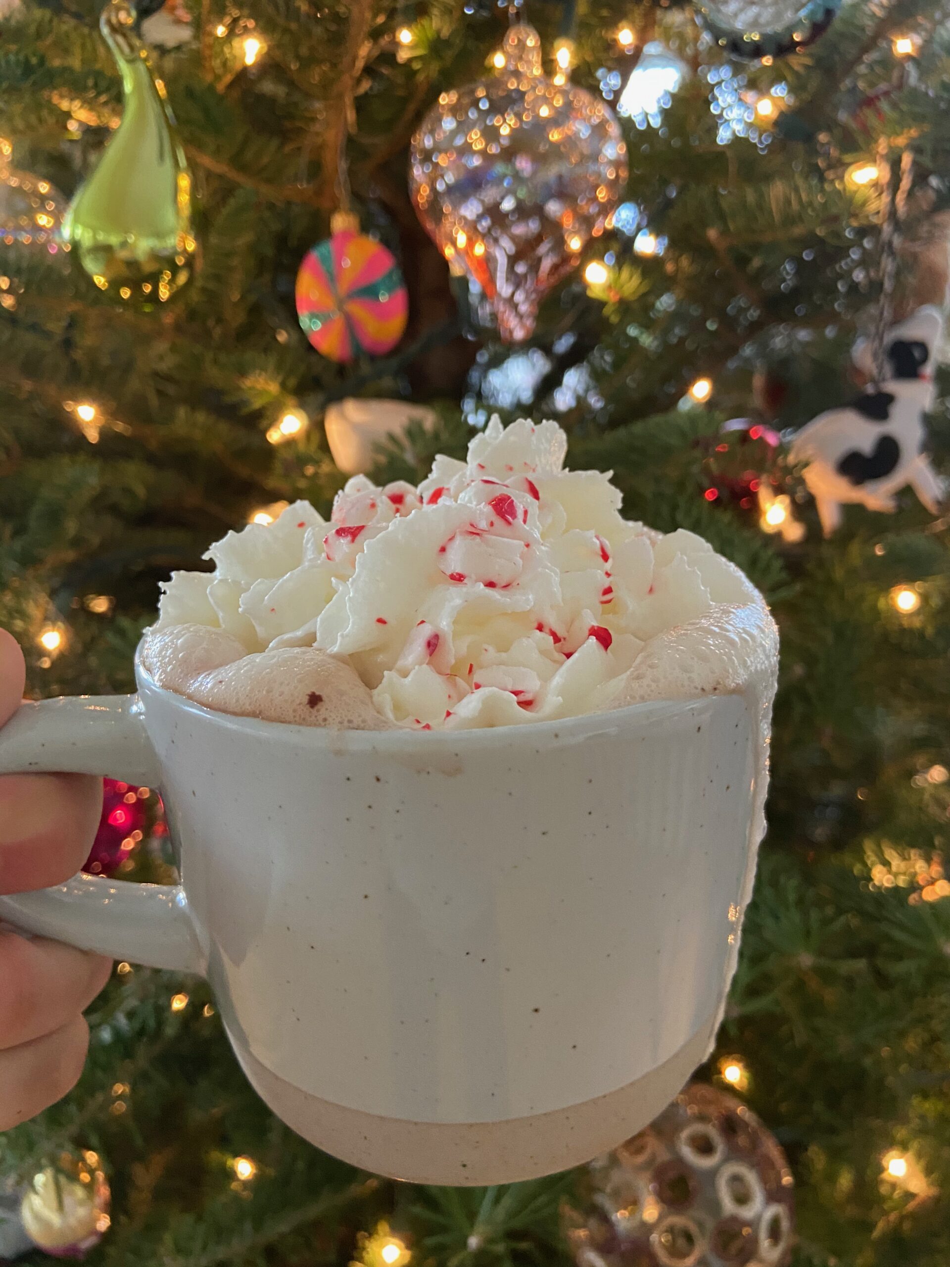 1 candy cane or 2 peppermint swirl candies, crushed (to crush: place candies in a baggie, then bang with a rolling pin until it’s reduced to shards)