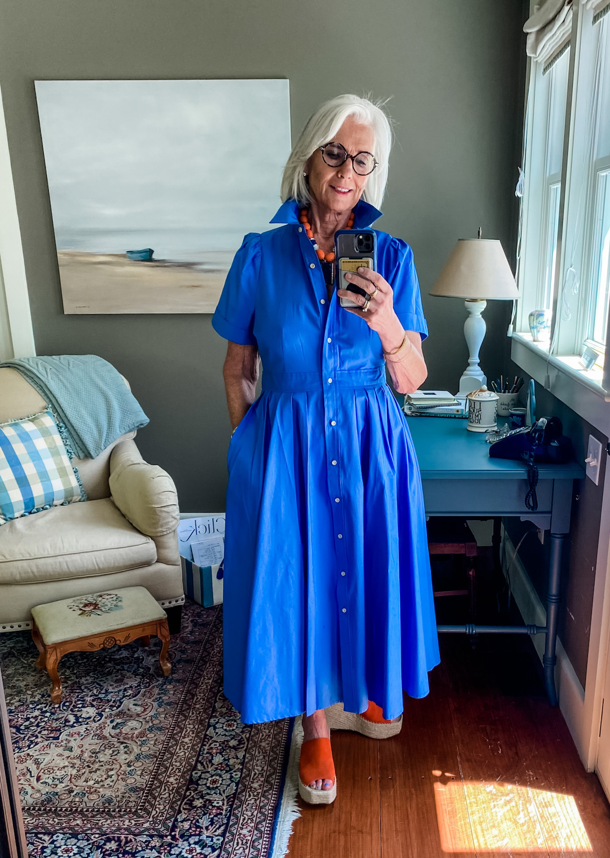 “At first I was just taking pictures of my outfits and sending them to my daughter, Alexandra, saying, ‘What do you think? How about this?’ Someone suggested I start an Instagram account, and Alexandra said, ‘Why not? We could do it together.’ It has brought us really close. I write the captions — she nixes half of them, haha. I’ll put on the outfit and show her. She’s very pregnant right now, and sometimes she’ll say, ‘Oh, wow, that whole outfit — as soon as I’m done being pregnant, I want it.’ Other times, she’ll go, ‘No way, not those shoes. Where did you even get them?!’