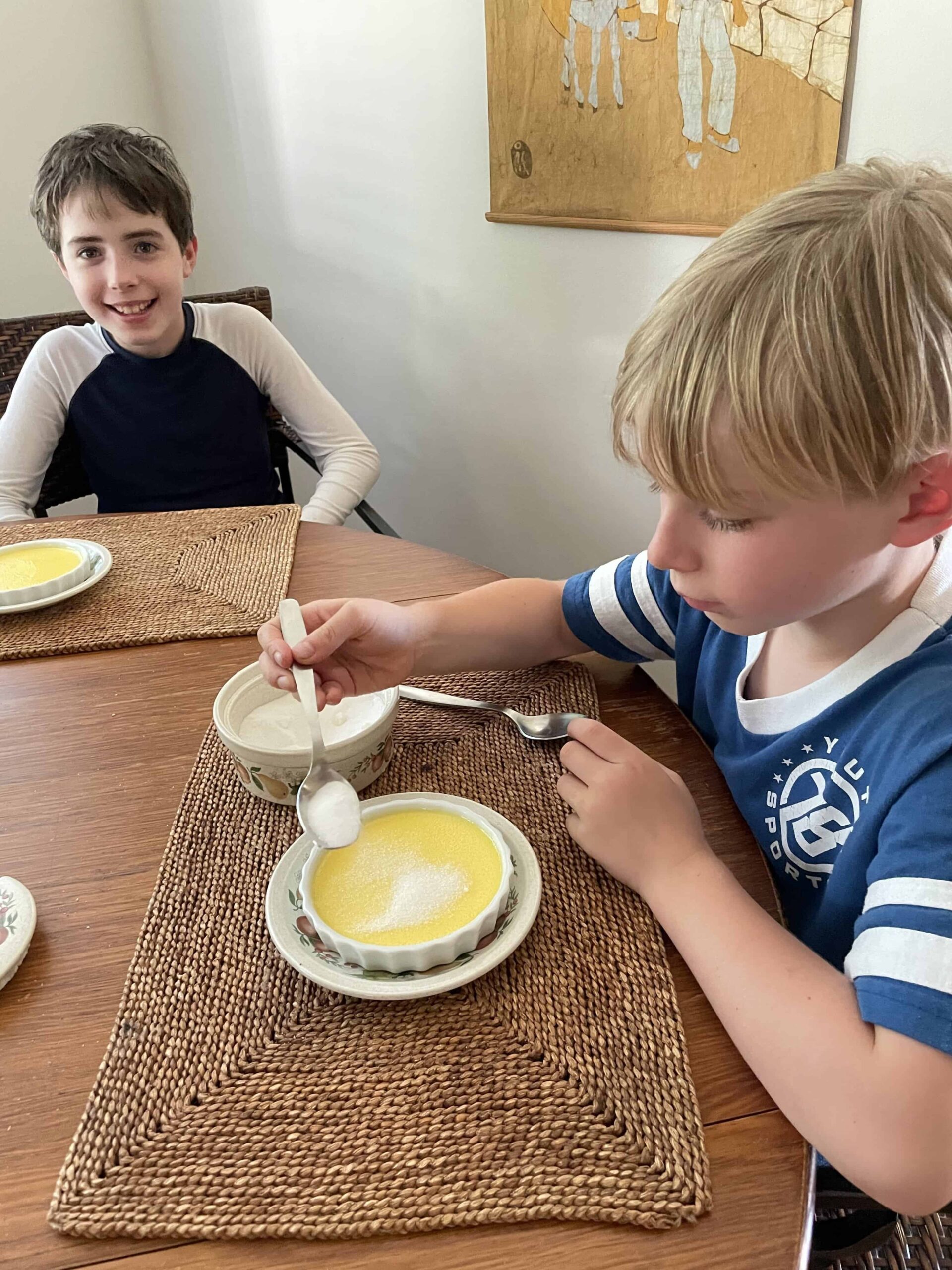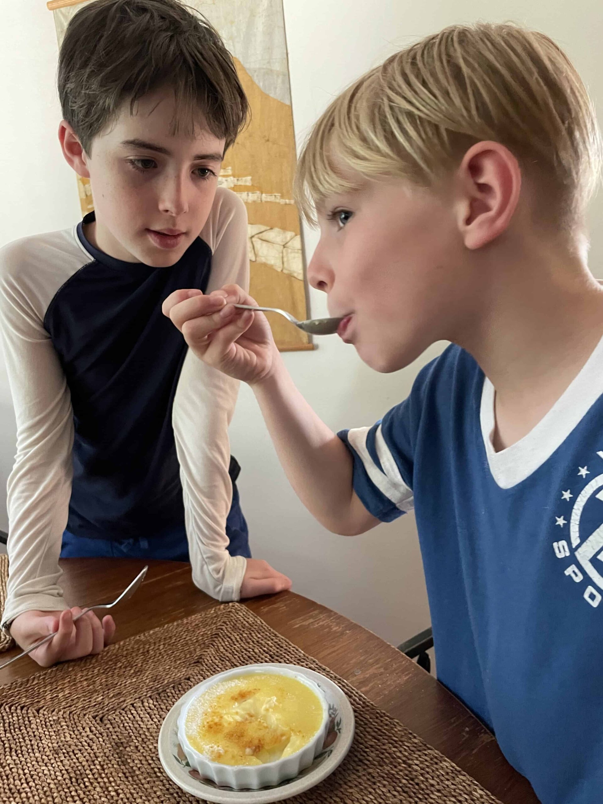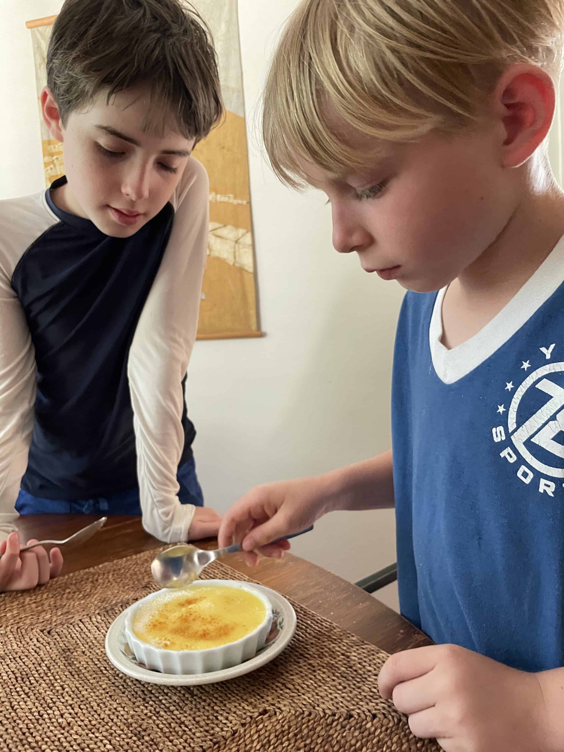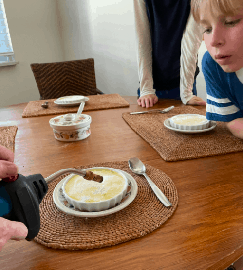 Have you ever made it? The recipe is cool yet deceptively easy: You sprinkle sugar over a custard base and then caramelize it with a small propane torch. A TORCH. Kids’ minds = instantly blown.