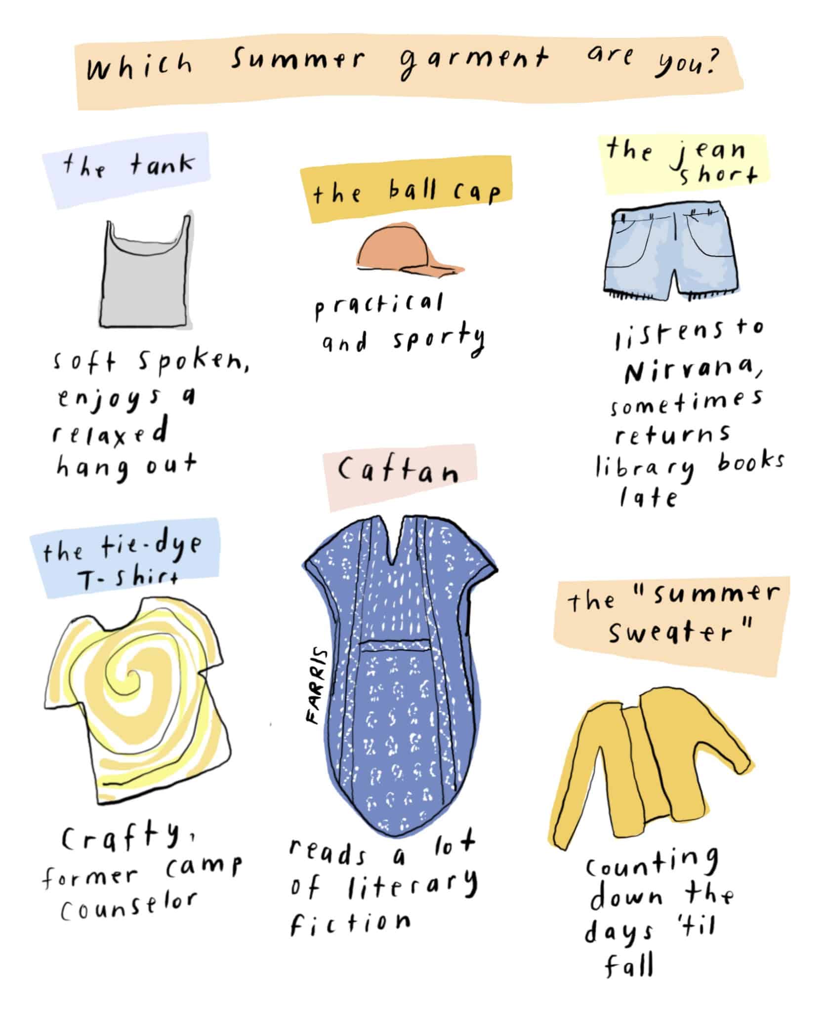 i guess i’m the tank! i always imagined myself as not a tank person (i thought i was caftan but i don’t read THAT much), but come to think of it my idea outfit this summer has been a loose linen cropped tank with light cotton sweat shorts so there i go