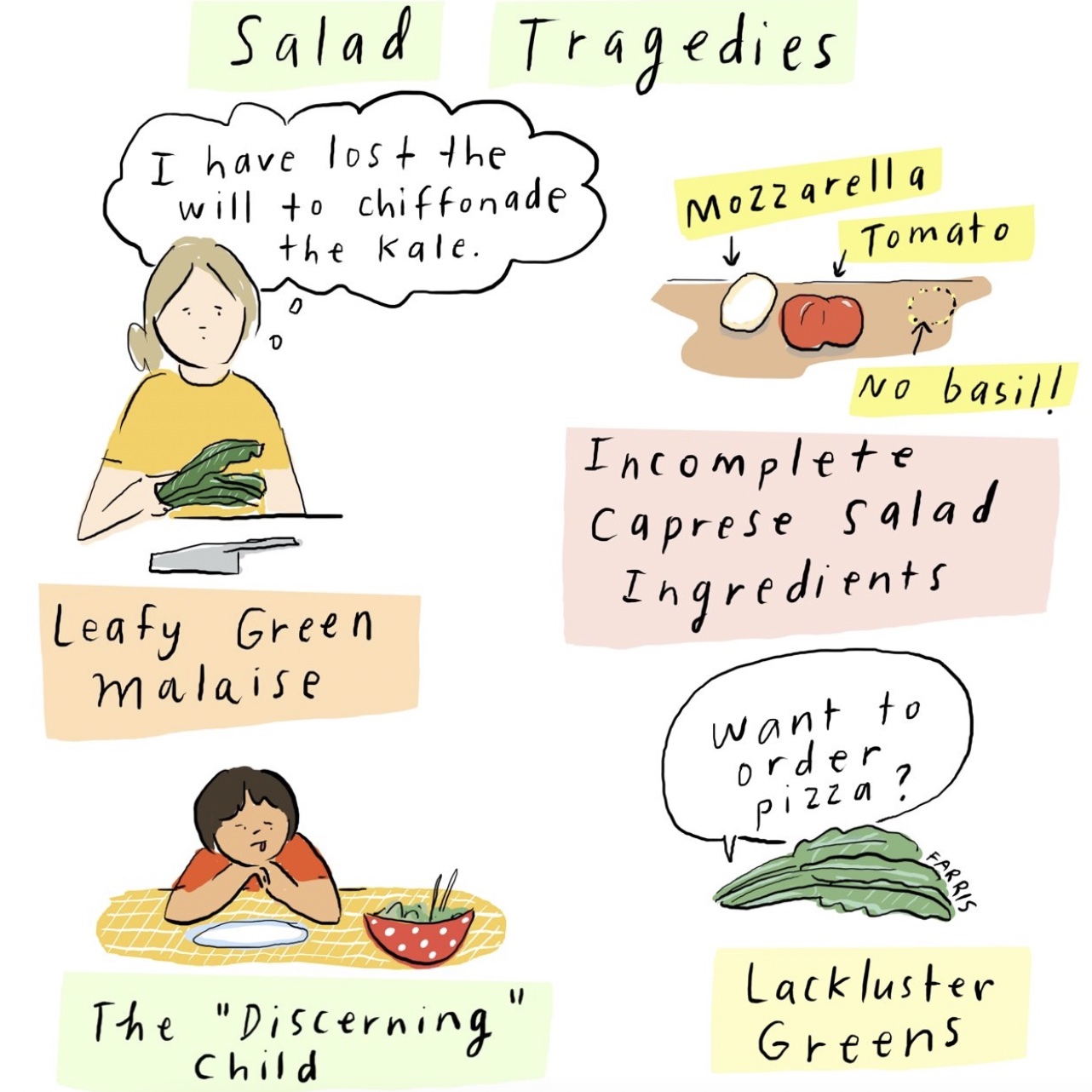 Also re: kale. Lacinato only! Leave the curly stuff for kale chips. My go to salad is lacinato massaged and with said olive oil and salt. Add a squeeze of lemon, then shave some parmesan onto the salad. Toast some panko in butter, salt, and grated garlic and top with this mixture. My partner and I fight over it, so we don’t care if our son doesn’t eat it.