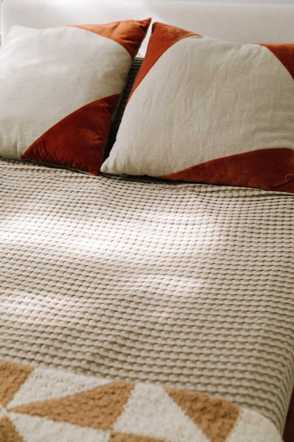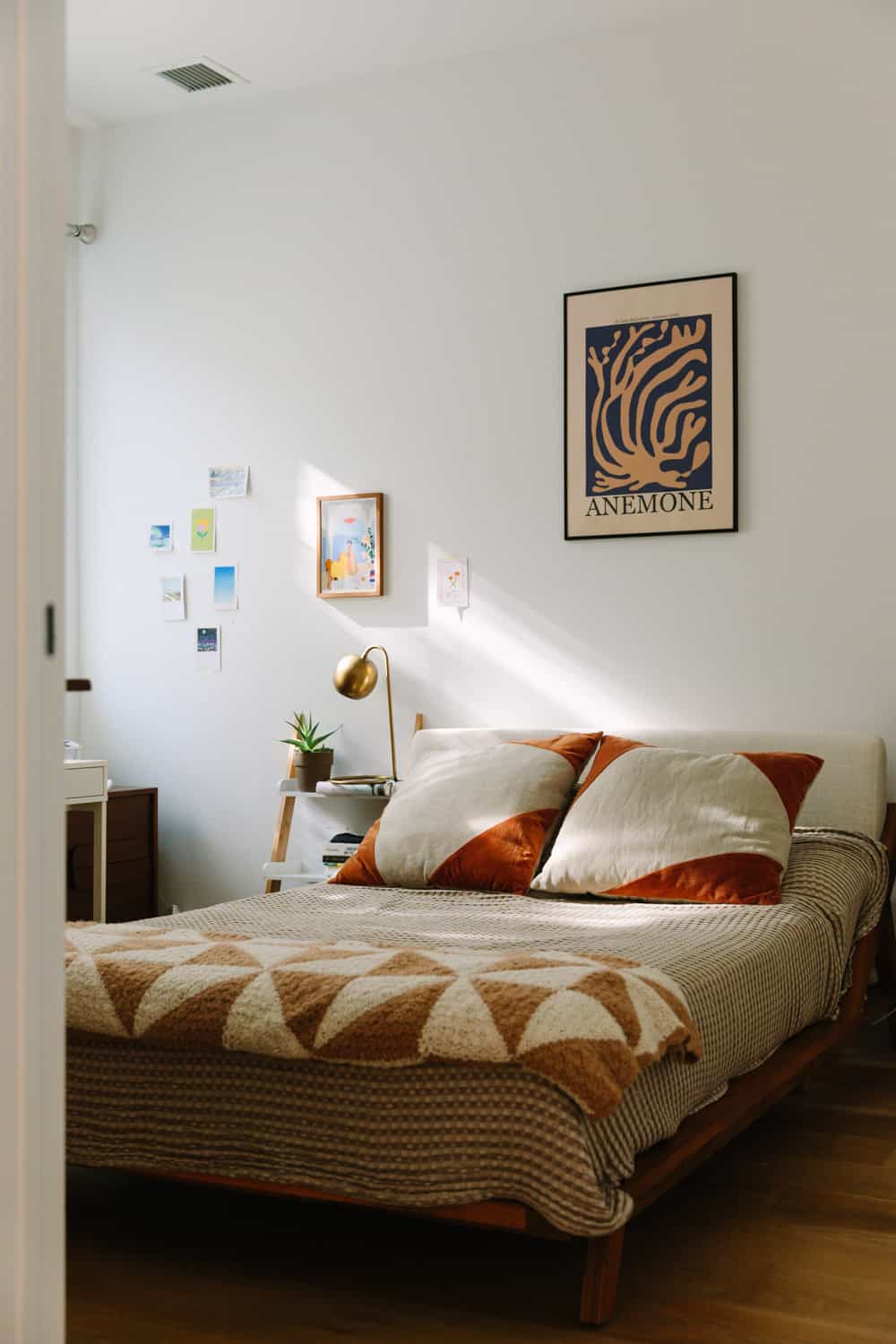 Bedframe: CB2. Lamp: Gantri, similar. Pillows: West Elm, similar. Blanket: Zara Home, similar. Print: PSTR Studio.