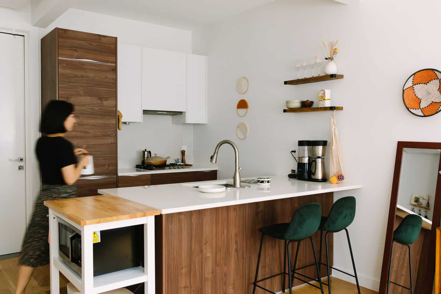 On apartment perks: First and foremost, the location. We really love our lively, diverse neighborhood, and we’re close to the park and subway. Second, the great sunlight we get in the morning. You start the day in a good mood when those beautiful rays shine in.