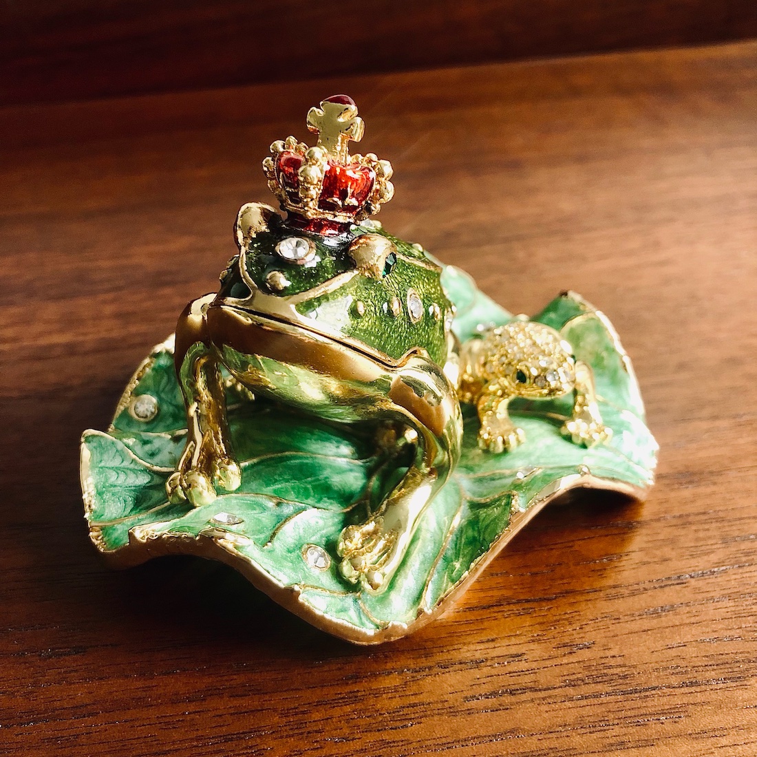 After dinner, we sat on a bench near the water, the two stars visible from NYC glistening overhead. Then, he grew quiet. Like, very quiet. (“I was nervous!” he remembers.) He rummaged around in the sweater and pulled out…an enamel frog. (A Frog Prince box procured by my boyfriend’s mother as a not-so-subtle hint the prior year. I had seen it arrive in the mail, but had no idea what it was for. And now, here it was! Reemerging in all its glory.) Inside the frog, there was a ring. The ring now lives on my finger.