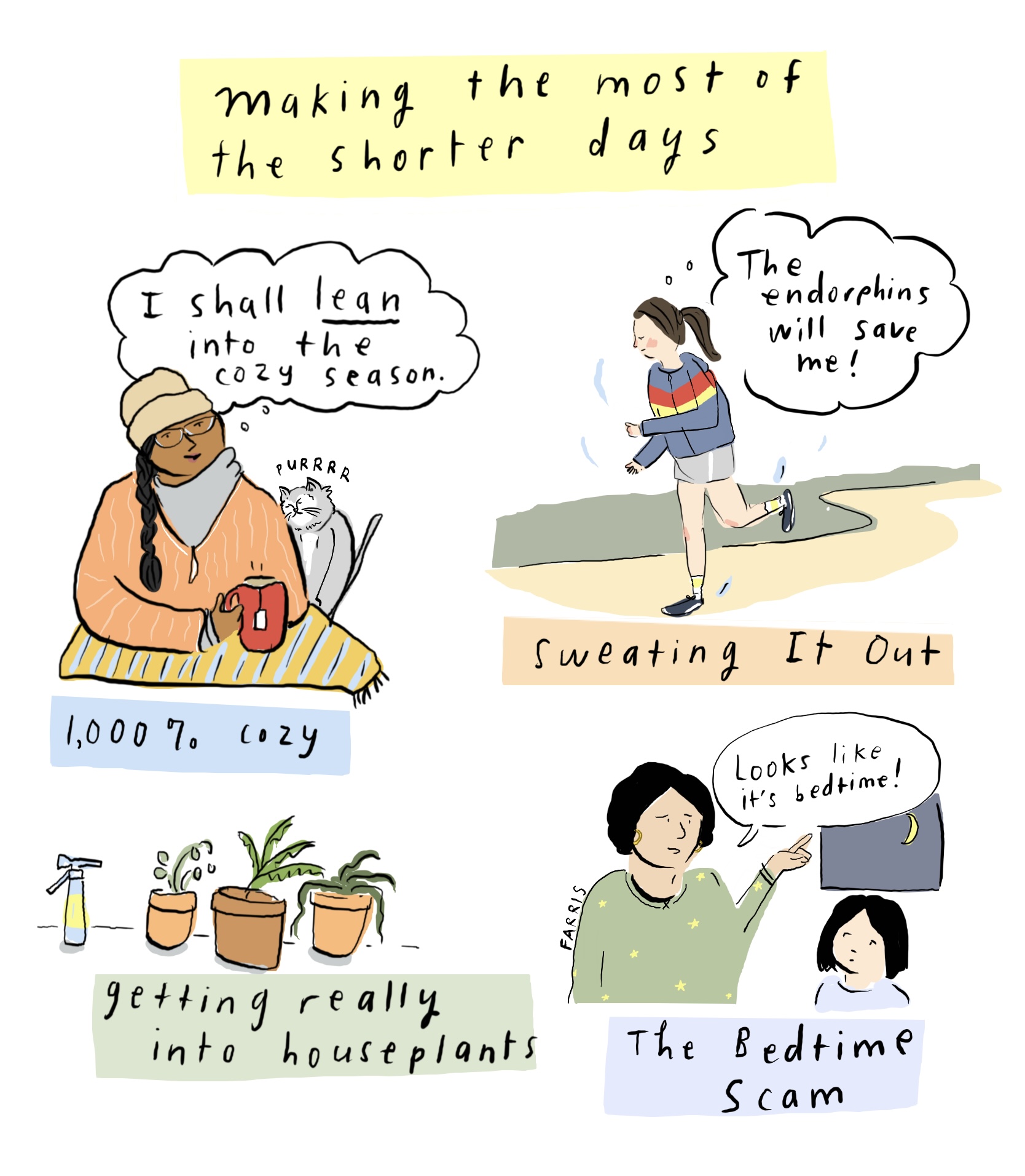 I can handle the darkness once there is snow on the ground, but the month of November just makes me want to bury my head under the covers and wait until it’s over. Would love to find a way to actually live November rather than just trying to get through it!