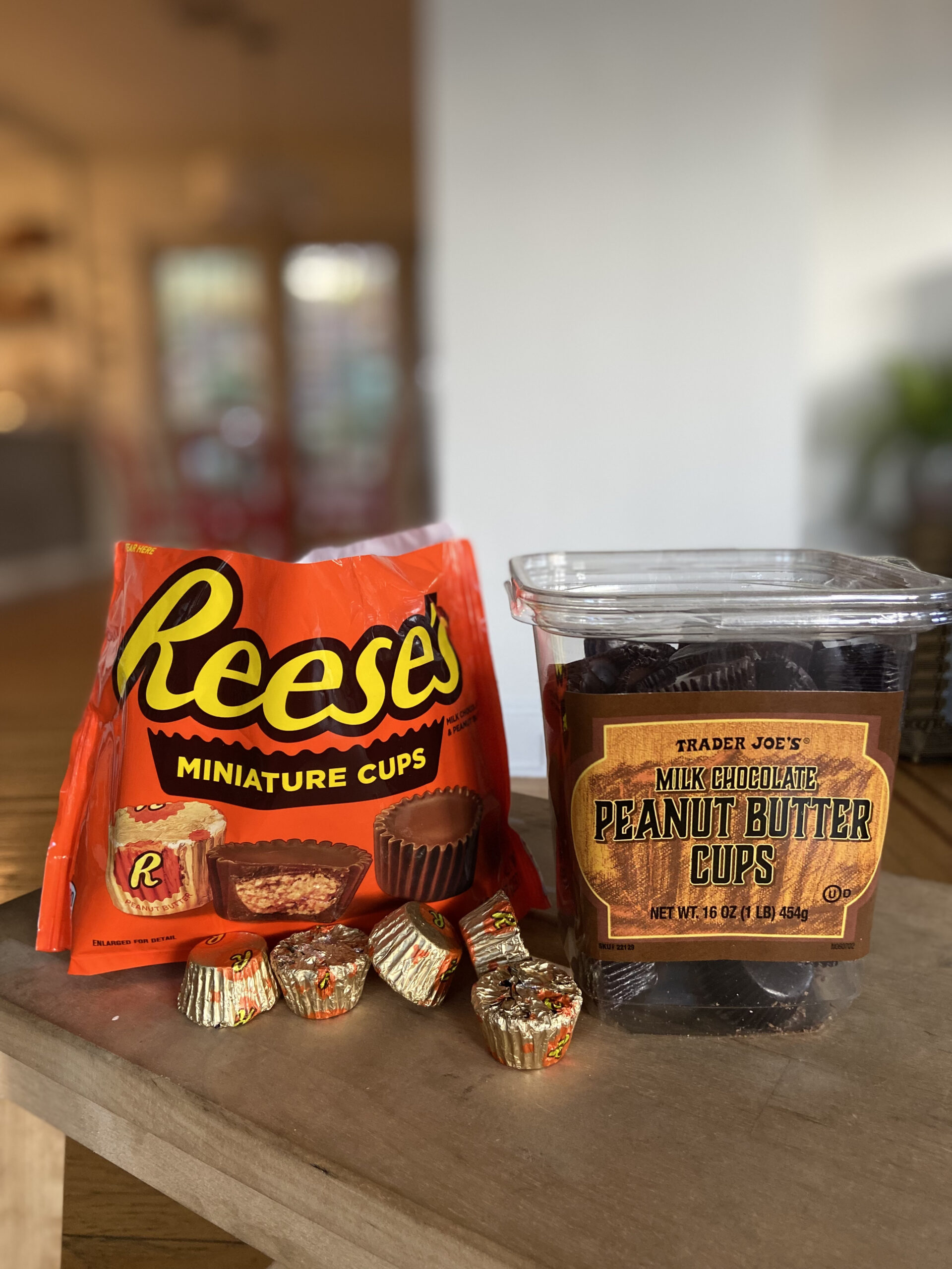 When Joanna texted me that she is a Reeses enthusiast, I couldn’t decide if that made her the best or the worst person to do the testing. In the end, she found Reeses to be superior, no contest. “The Trader Joe’s cups taste waxy with too much chocolate. Reese’s is salty as well as sugary and I love them so much and will eat one every night until the day I die.”