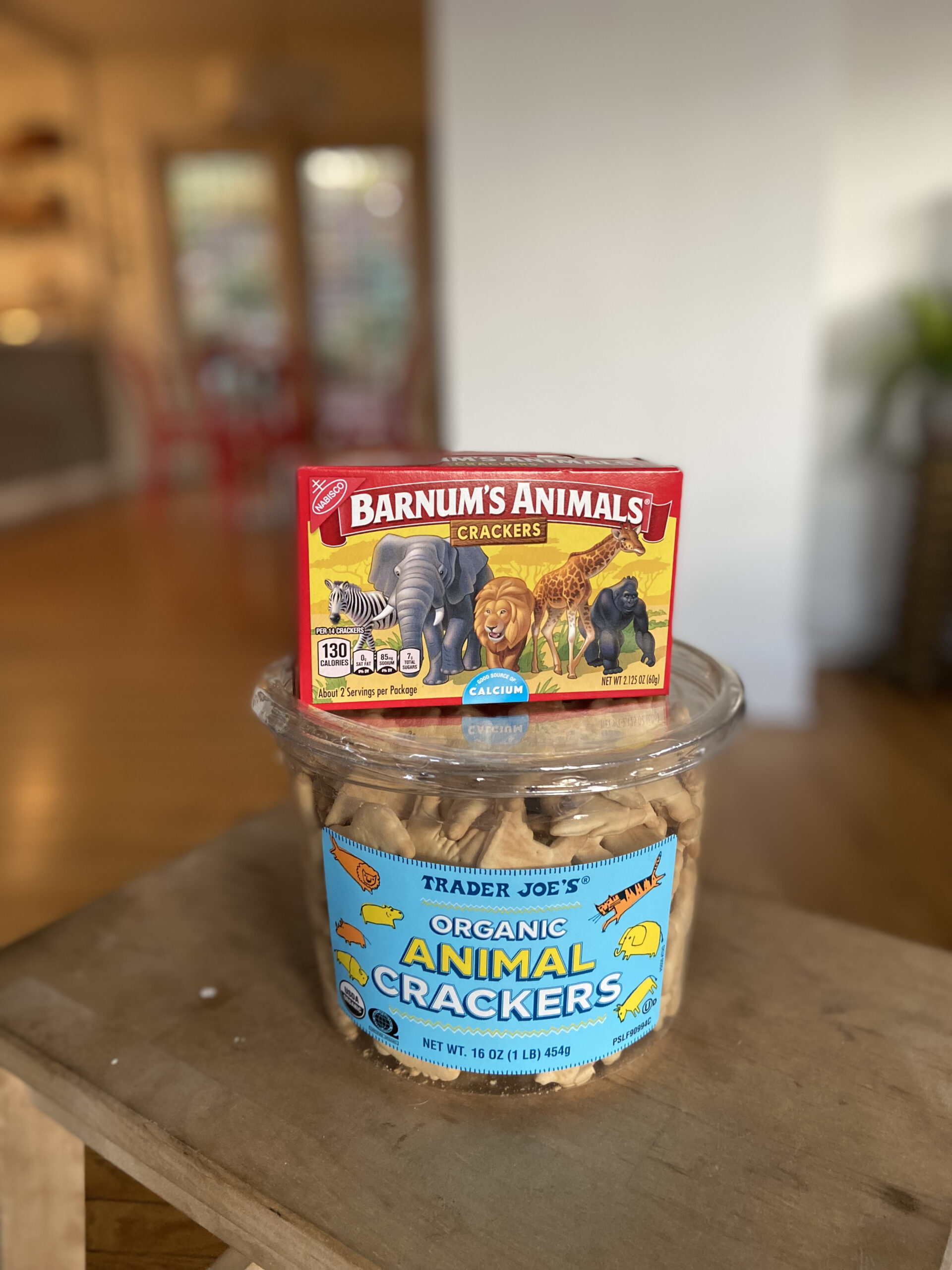 The original animal cracker has such a distinct taste for me, I thought it would be impossible to replicate. So, it blew my mind that — although there were more ridges on the original — the two were nearly indistinguishable. (And, I might add, you get way more bang for your buck with the Trader Joe’s version.) “It’s really only a texture thing,” Andy said. “The flavor is the same.”